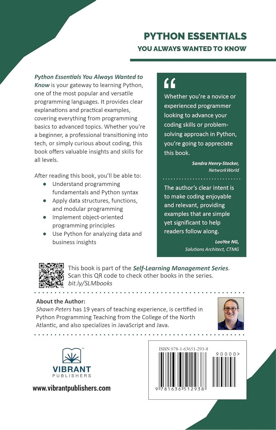 Get ready to program with Python- one of the most in-demand skills of this decade! If you are interested in learning programming, but not sure where to start, Python Essentials You Always Wanted to Know is your guide to learning Python, one of the most versatile and beginner-friendly programming languages. This book is designed with absolute beginners in mind, focusing on clear explanations and practical examples rather than technical jargon. Regardless of skill level, there’s something here for everyone, from the basics of programming logic to more advanced topics like object-oriented programming and error handling. Whether you’re a student, a professional transitioning into tech, or simply curious about coding, this book will help you to think like a programmer and enhance your programming skills.The book also includes a chapter dedicated to case studies, giving you the opportunity to practice and apply the discussed concepts. Additionally, you will gain exclusive access to an online glossary of functions and methods mentioned throughout the book to help you retain and understand crucial programming terms.