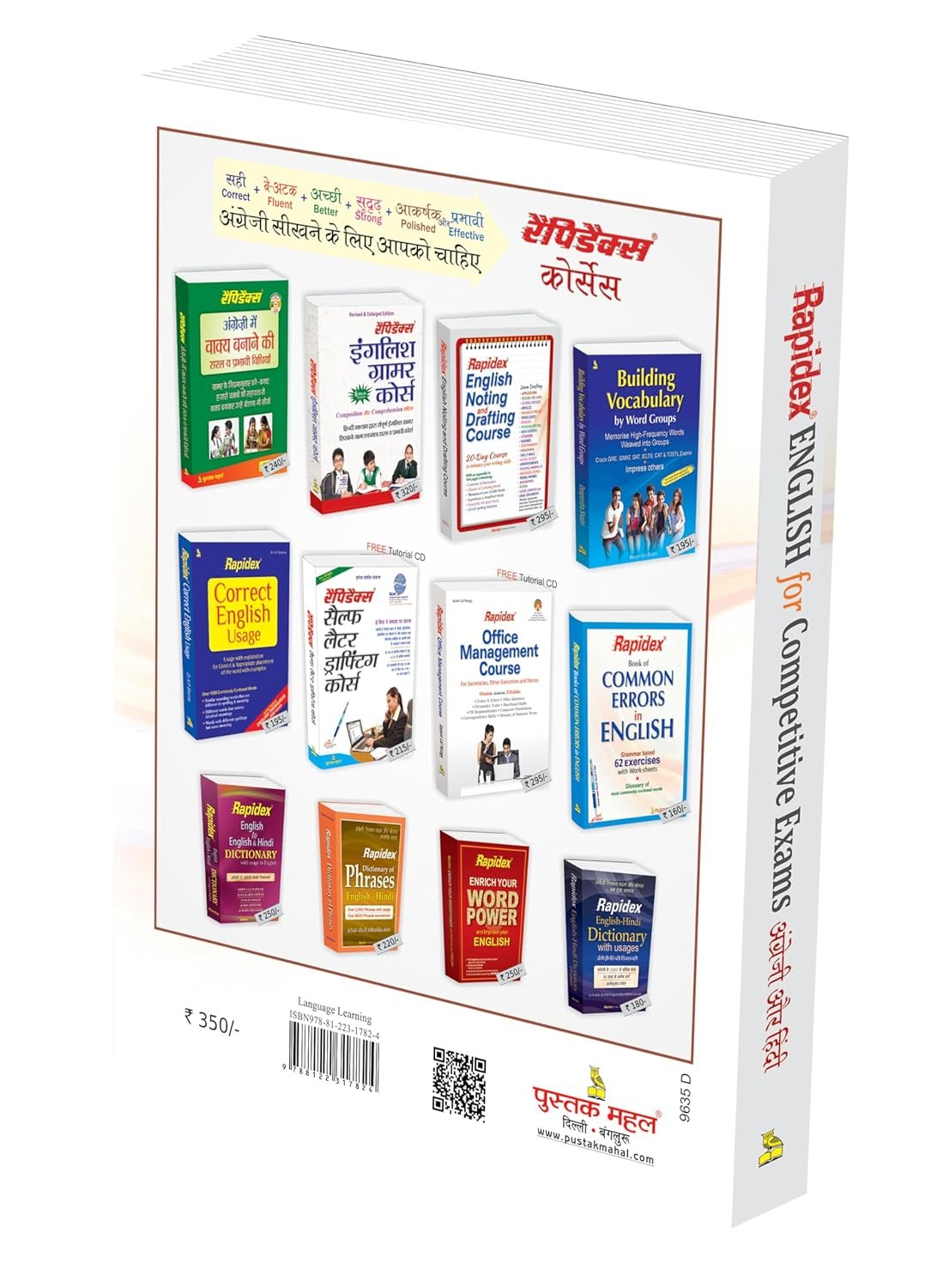 Rapidex English for Competitive Exams is designed to help aspirants prepare for competitive exams like SSC, UPSC, SPSC, RRB, LIC Exams, Bank Exams, CA Entrance, Hotel Management Entrance, Law Entrance, Medical Entrance, Defence Services, Foreign Education and other government and private sector exams. Here’s a brief overview of its key features: Focused Content: Tailored to improve English grammar, vocabulary, and comprehension skills. Practice Tests: Includes mock tests and exercises aligned with exam patterns. Tips and Tricks: Provides strategies to solve questions efficiently. Comprehensive Coverage: Covers important topics like error spotting, sentence improvement, synonyms/antonyms, and more. User-friendly: Written in a simple and understandable language, suitable for learners at different levels. If you’re preparing for competitive exams, this book could be a helpful guide!