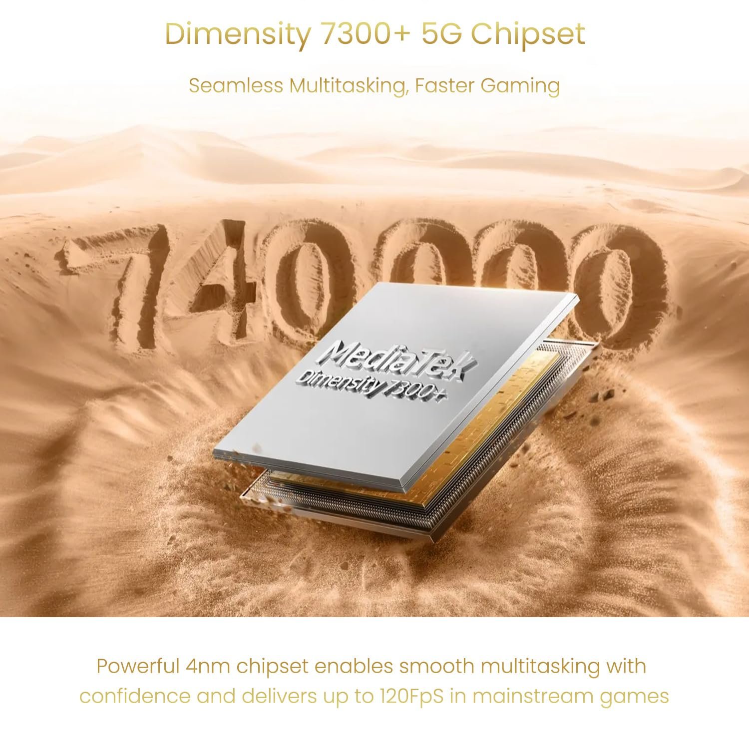 Performance: Powered by Dimensity 7300+ chipset, ensuring strong and reliable operation.