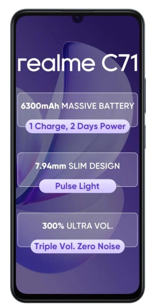 6 reviews for realme C71 4G Smartphone 4GB+64GB Black,6.745 inch Screen, 90Hz Eye Comfort Display, 6300mAh Battery, 37MP Cameras, Unisoc T7250 Chip, IP54