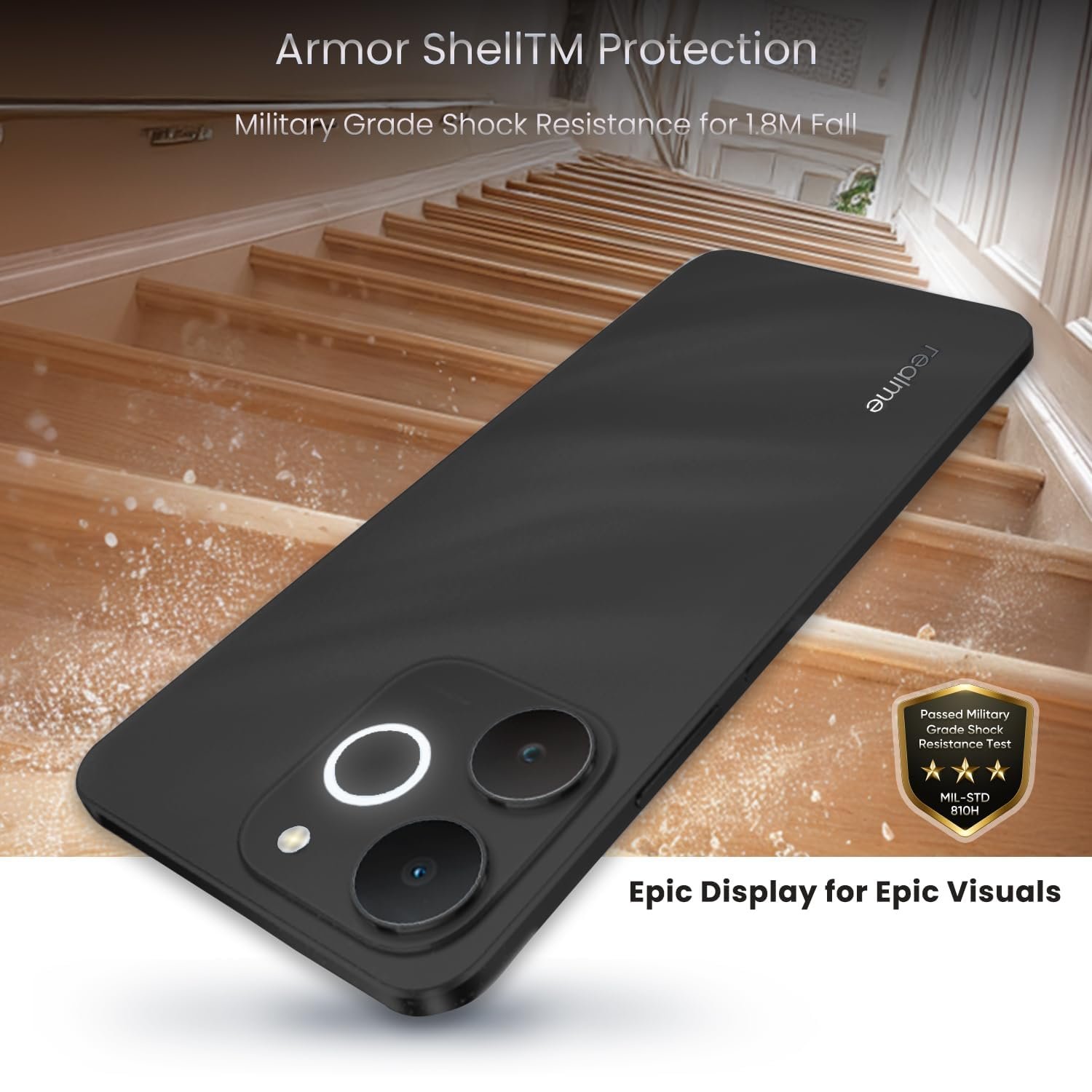 Realme C71 features a remarkably slim 7.94mm profile and lightweight 201g design for exceptional comfort in hand. Complementing its ergonomic form, the distinctive circular flash ring design enhances visual appeal while catering to the aesthetic preferences of young users.
