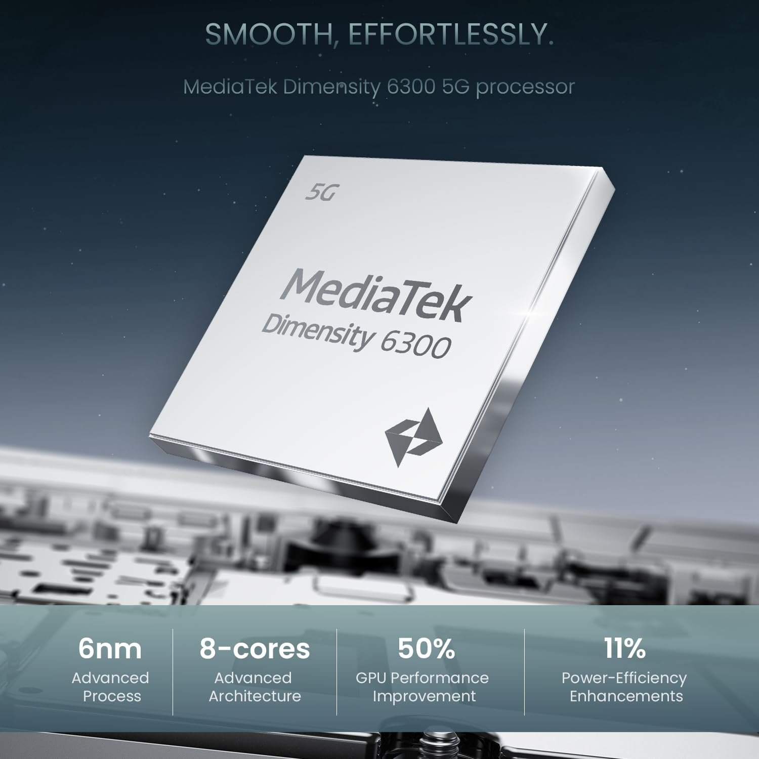 MediaTek Dimensity 6300:Lag – free performance, handles multitasking and apps with ease.