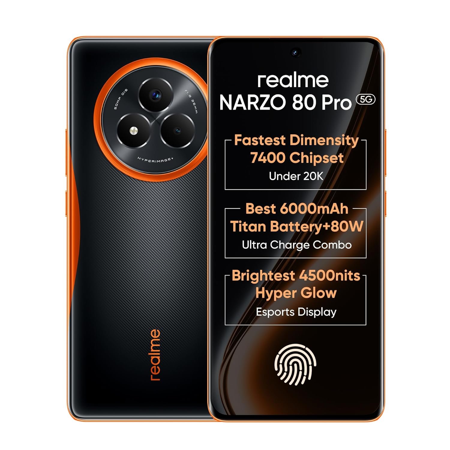 realme NARZO 80 Pro 5G (Nitro Orange,8GB+256GB) | Segment’s 1st MediaTek Dimensity 7400 Chipset | 6000mAh Titan Battery + 80W Ultra Charge | 4500nits HyperGlow Esports Display | IP69 Waterproof
