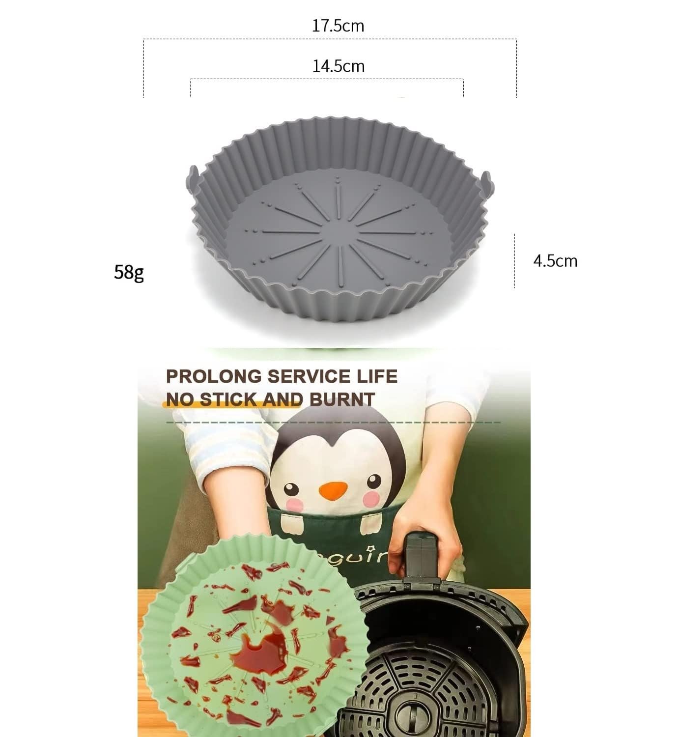 [Versatile Usage] Our silicone air fryer pot isn’t limited to air fryers alone. It’s suitable for use in microwave ovens, regular ovens, stoves, and more, making it ideal for a wide range of culinary endeavors, from barbecues to desserts.