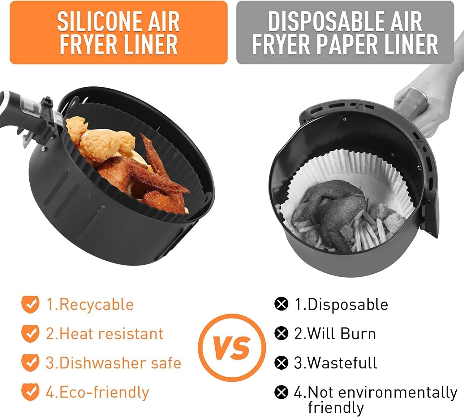 [Durable & Cost-Effective] Our reusable air fryer silicone pot outperforms disposable parchment paper, offering better longevity and value. It’s thicker, reducing the risk of burning, and eliminates the hassle of cracking or oil leaks.