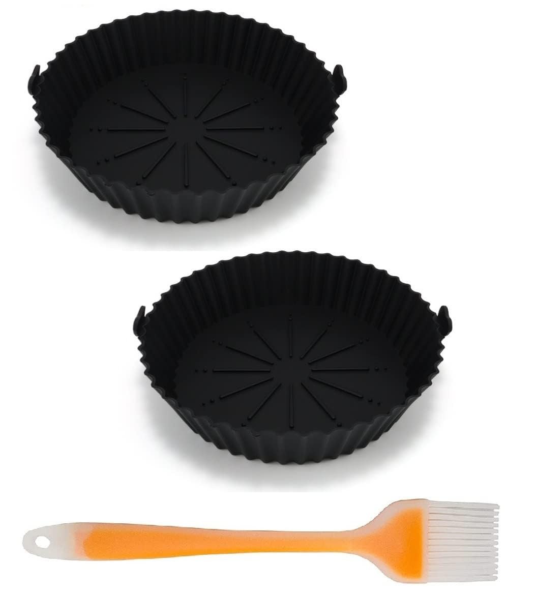 RIVAAN 2PCs Air Fryer Silicone Liners Baking Tray – Reusable Round Pot Inserts for 3-5 QT Air Fryers – Easy-Clean Non-Stick Oven Accessories with Parchment Liner Compatibility (7.5 INCH, Black – 2)
