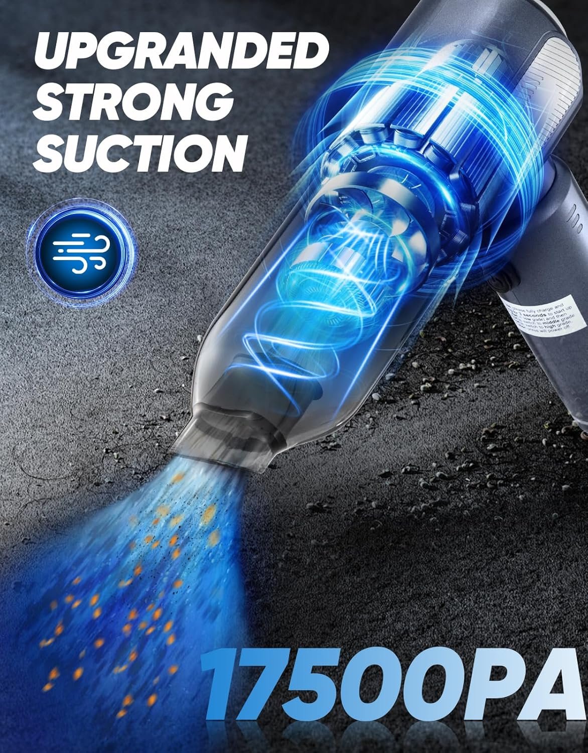 【Washable HEPA Filter & 6.7oz Capacity】SakerPlus cordless portable car vaccum is equipped with a high-quality HEPA filter that ensures thorough cleaning by effectively trapping dust and particles. This filter is washable and reusable, allowing for long-term use and easy maintenance. Sakerplus portable vacuum cleaner also comes with an extra replacement filter for added convenience. With a 6.7oz dust capacity, this compact vacuum is perfect for quick cleanups at home or on the go, making it a reliable tool for maintaining cleanliness.