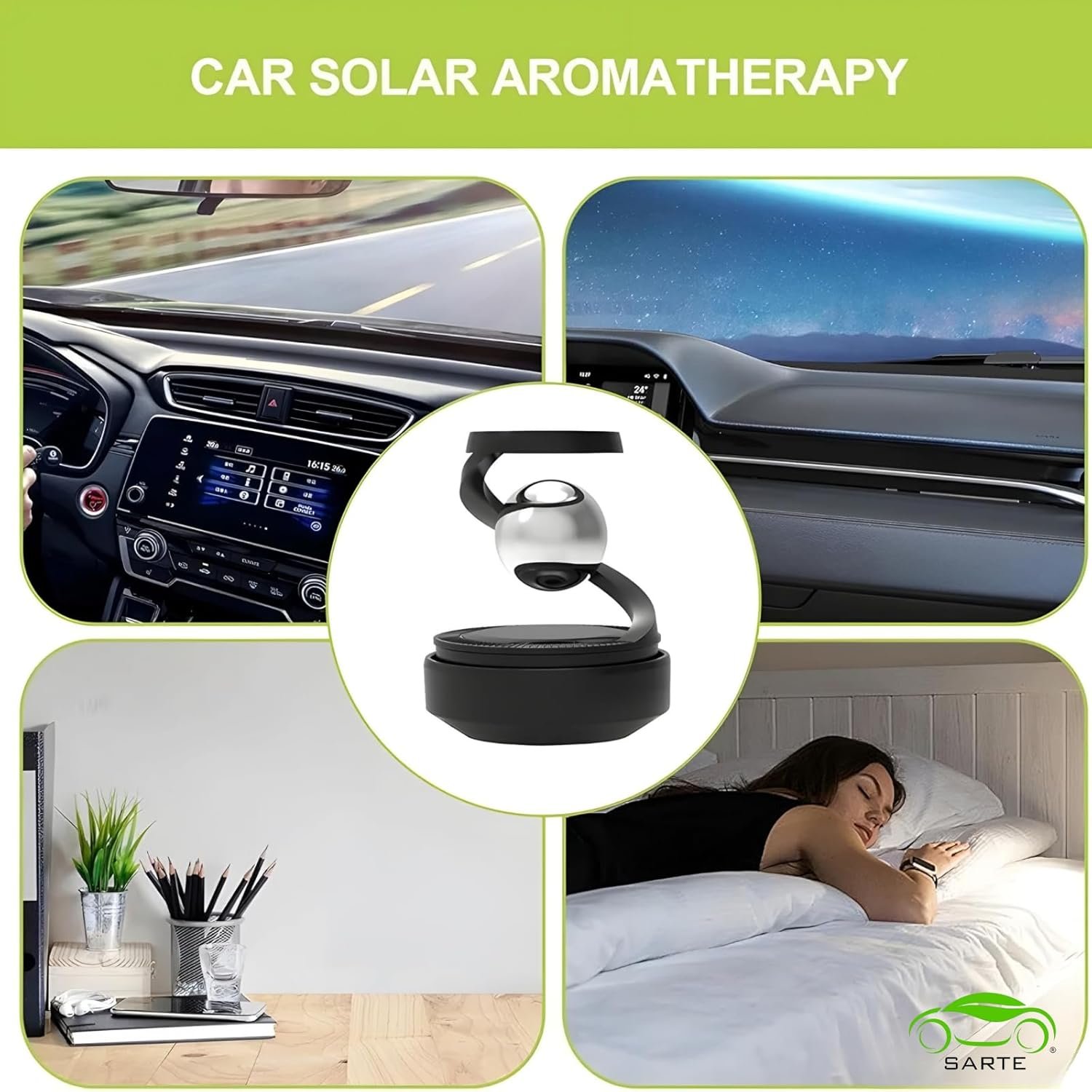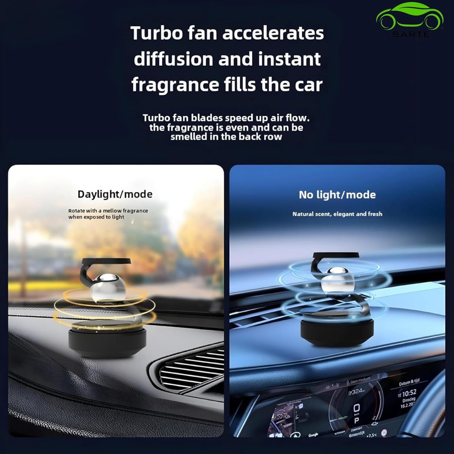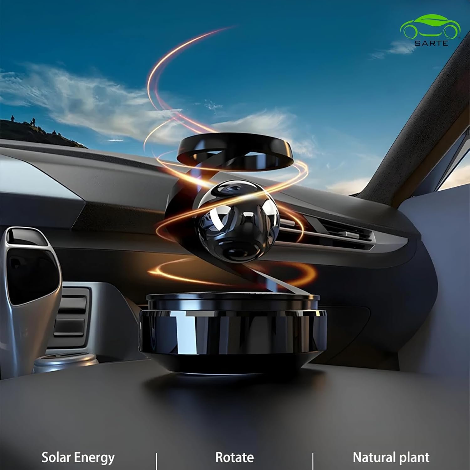 SARTE Solar Car Air Freshener Automatic Rotating Dashboard Air Purifier with Refillable Fragrance (Black)