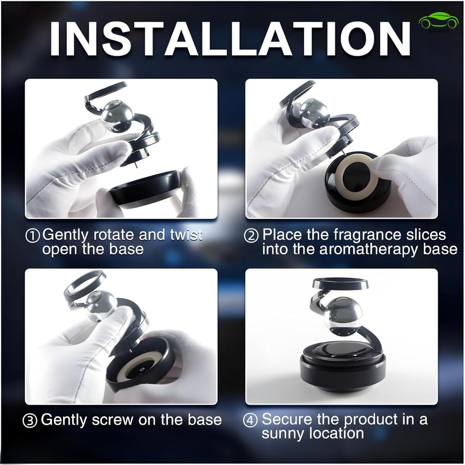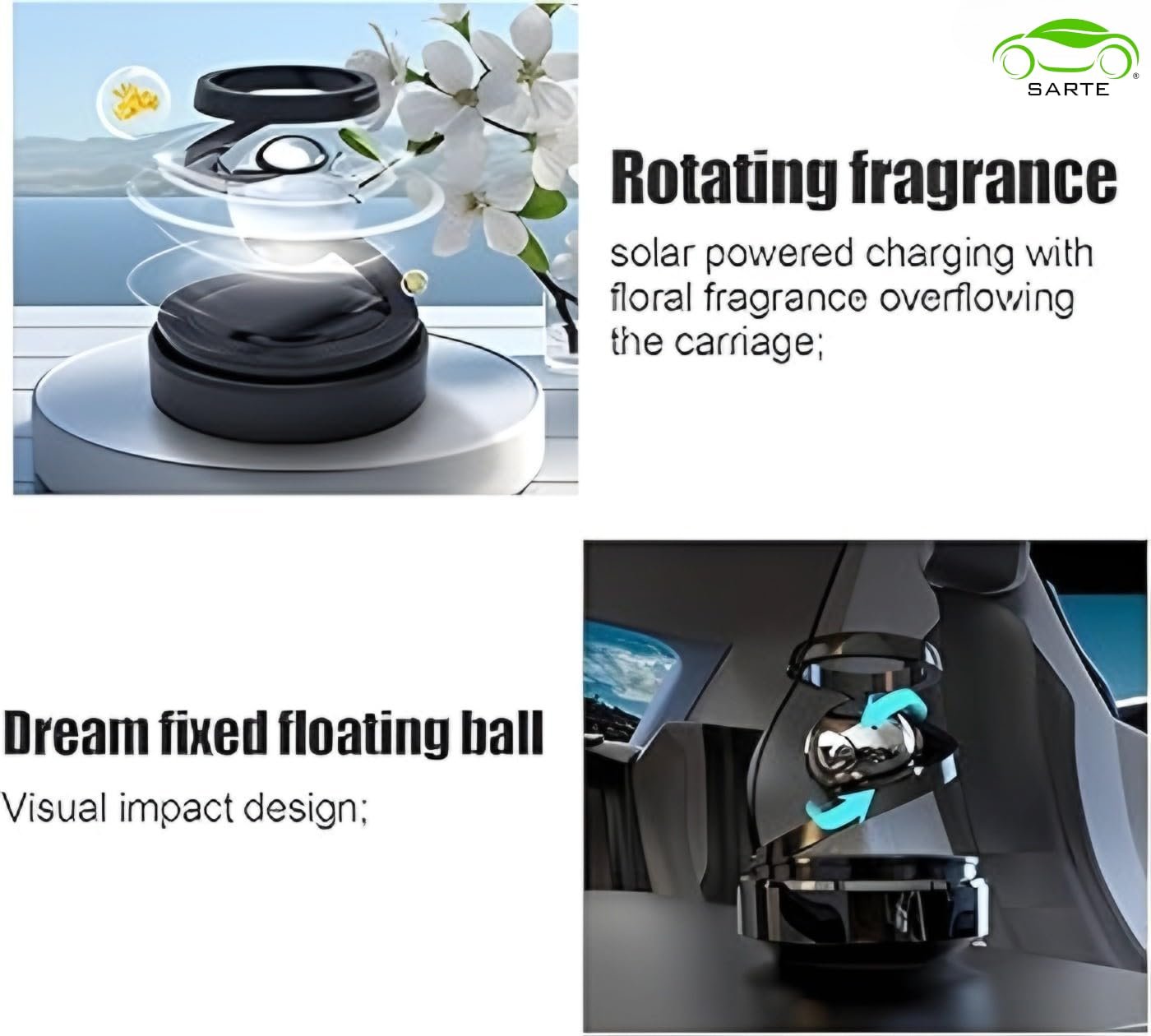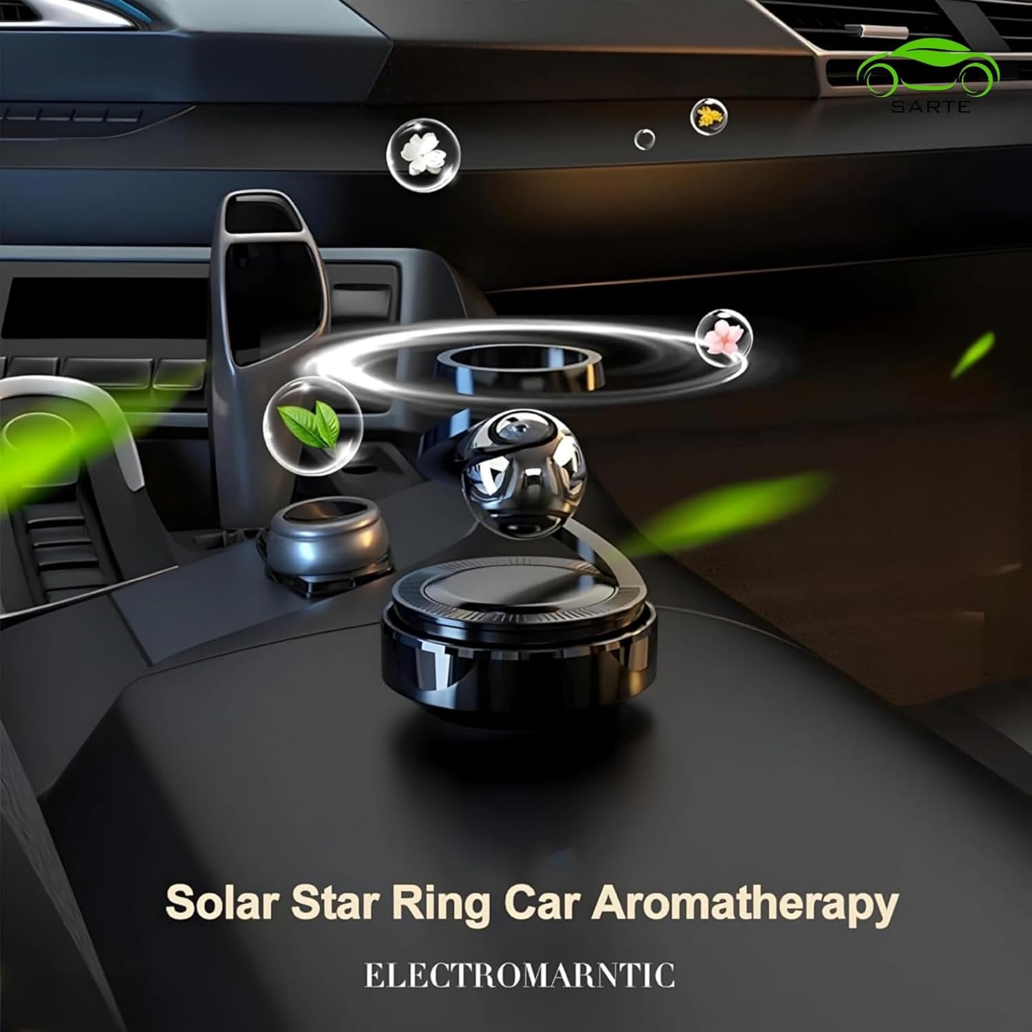 SARTE Solar Car Air Freshener Automatic Rotating Dashboard Air Purifier with Refillable Fragrance (Black)