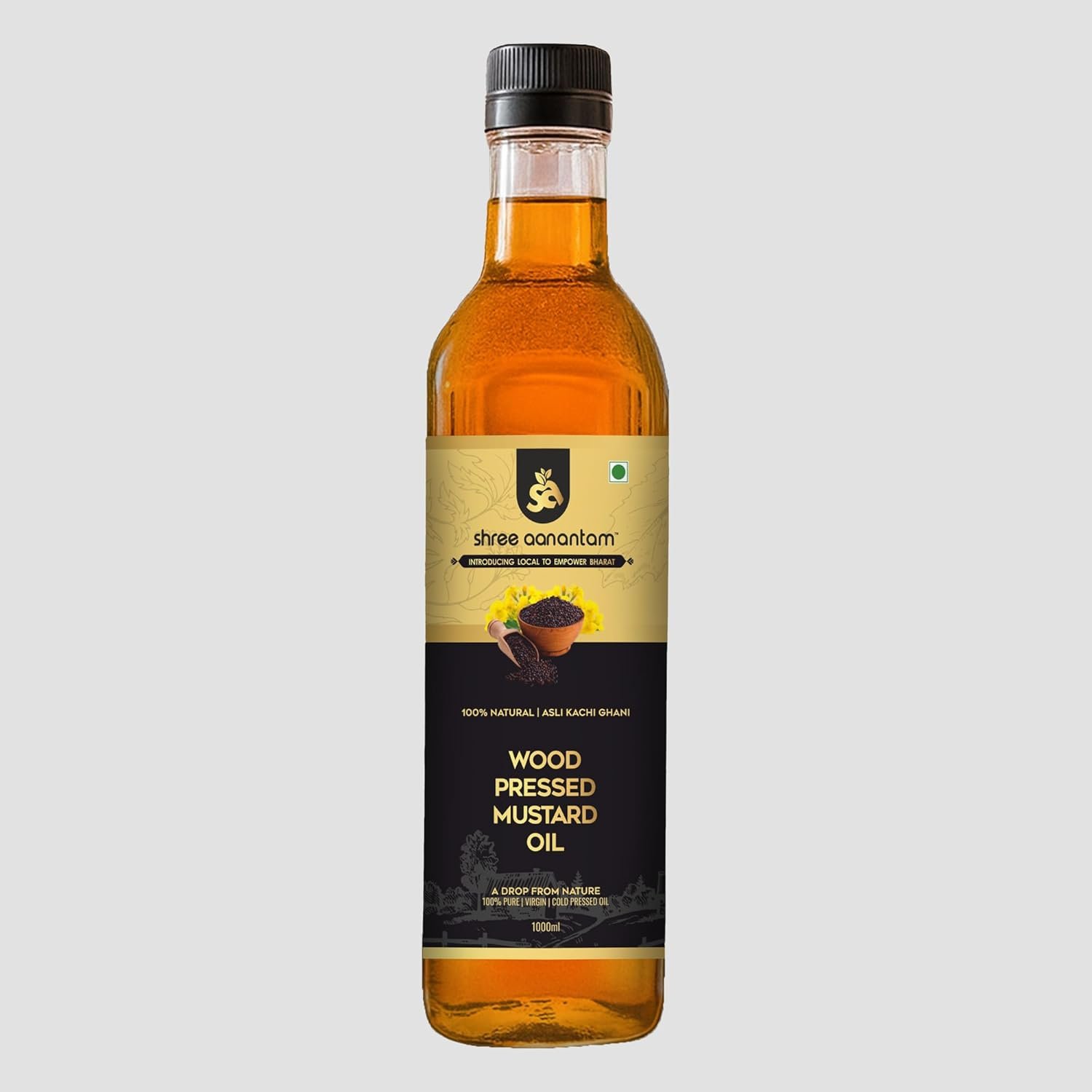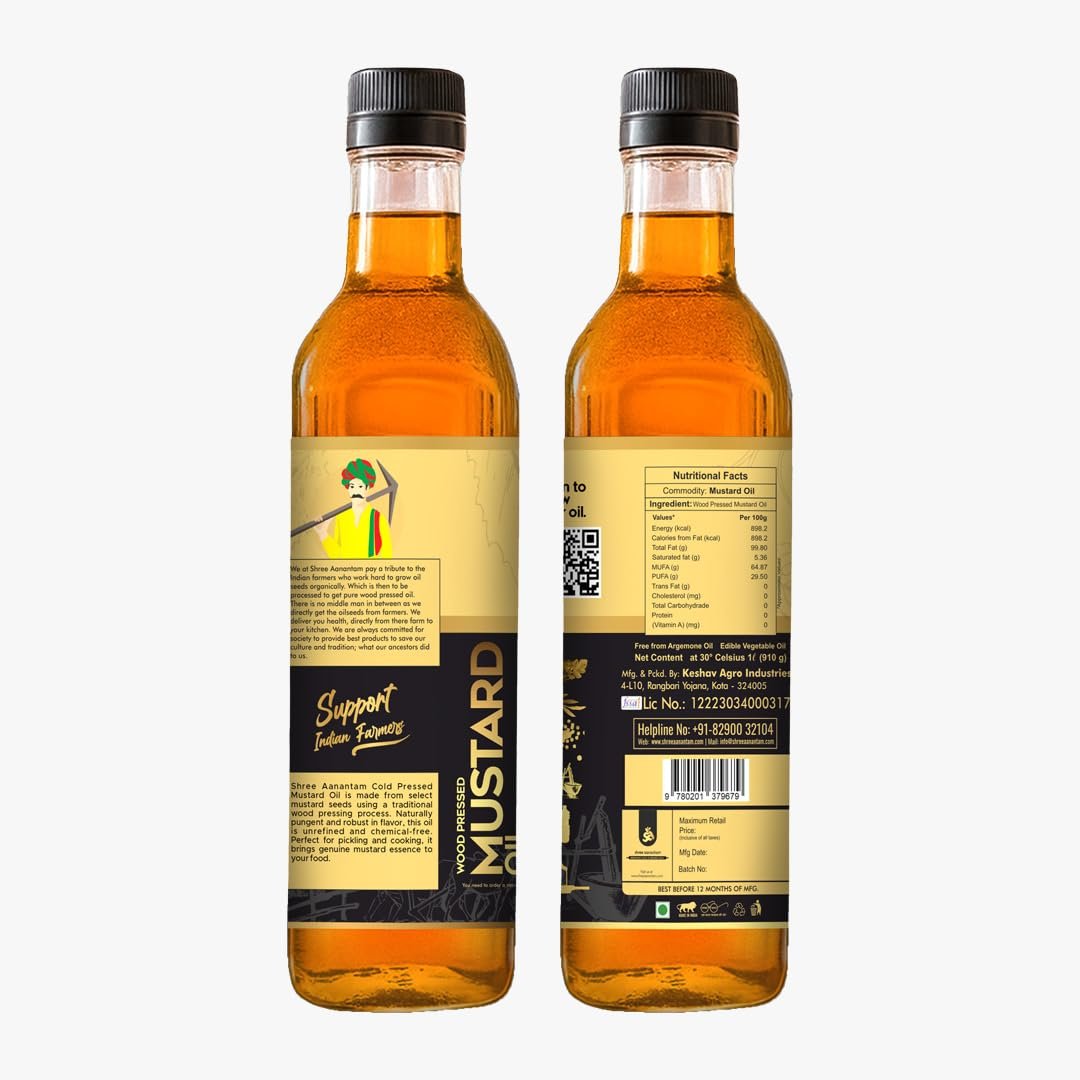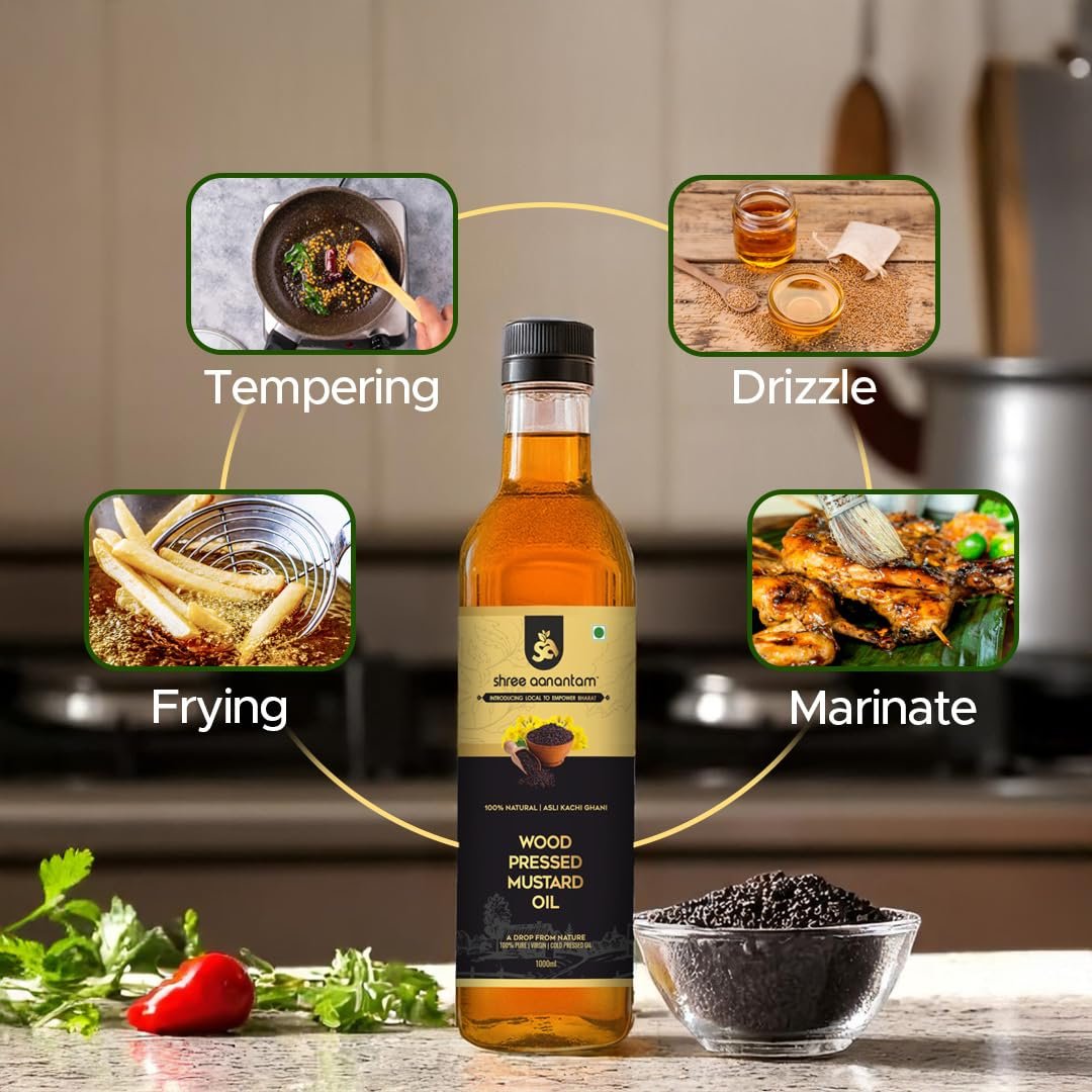 Shree Aanantam Kachi Ghani Cold Pressed Mustard Oil – 1L | Pure & Natural | Unrefined | Ideal for Cooking, Hair, & Skin Care | No Additives or Preservatives