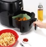 Our airfryer liners silicone construction ensures even heat distribution, resulting in perfectly cooked meals. The silicone baking pan is round, fitting snugly into your air fryer and making it easy to clean. The tray also doubles up as a silicone baking tray for air fryer, helping you bake delicious treats effortlessly.