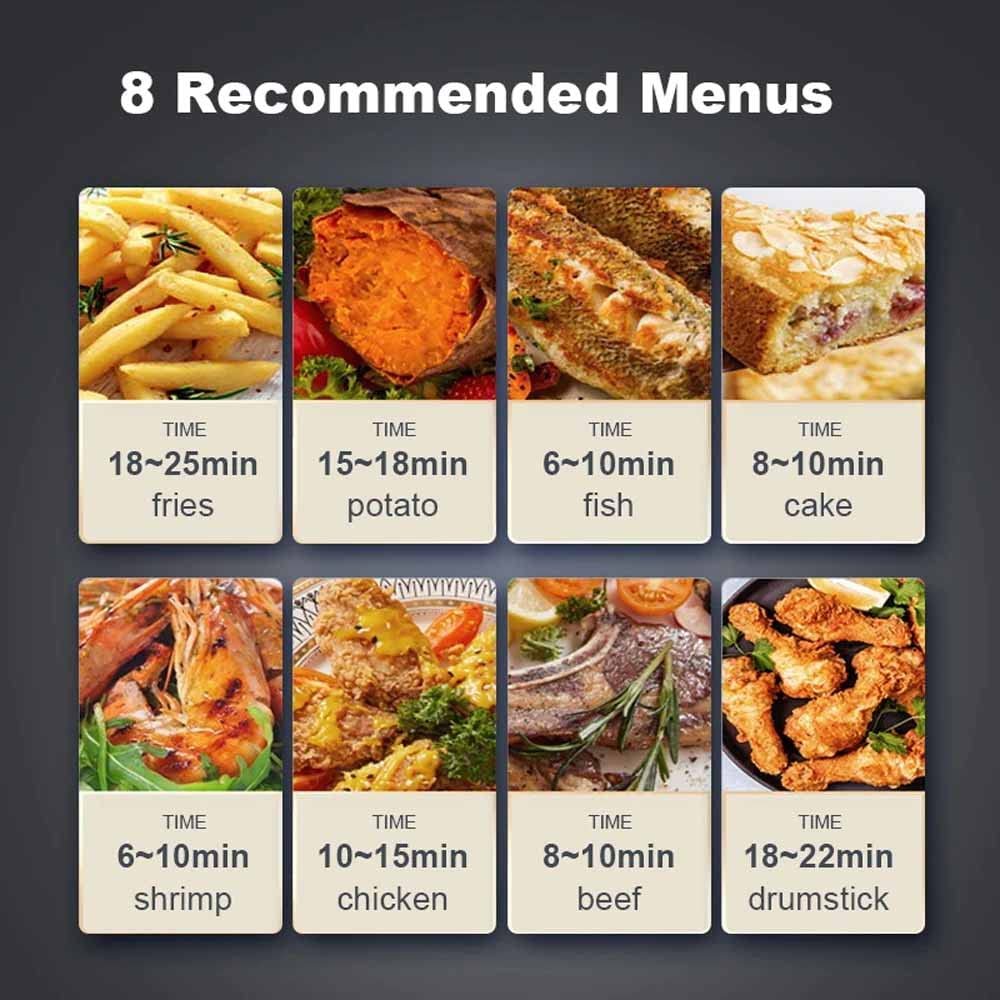 ➜Even and powerful heating This Oil Free Air Fryer circulates super hot air around your food, cooks your meals faster with 1400W powerful built-in 3D hot air circulation and 360° air convection system, crisps food quickly, tastes better and tastes healthier
