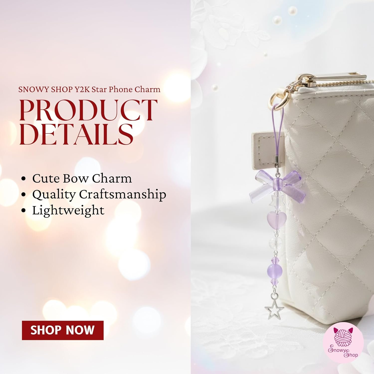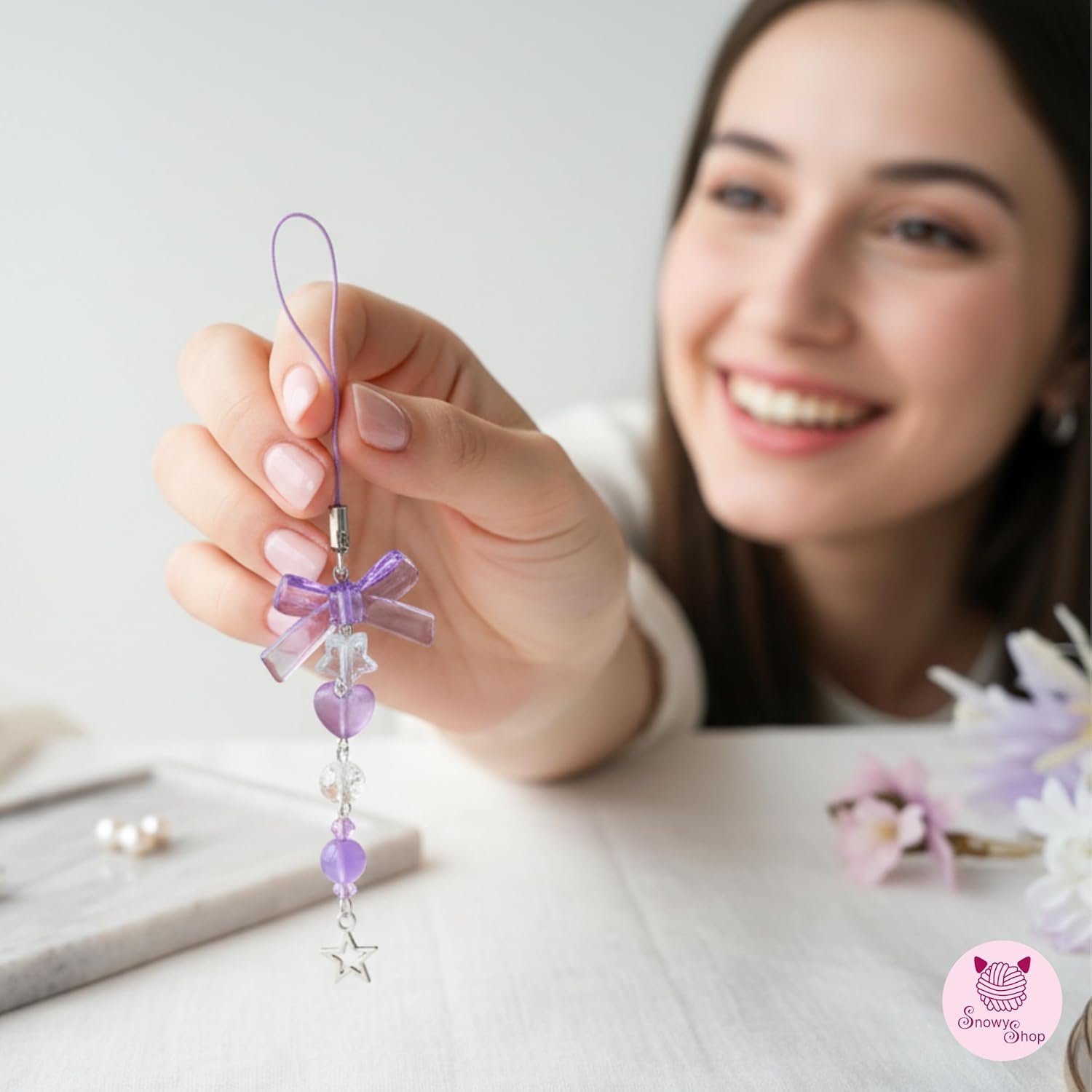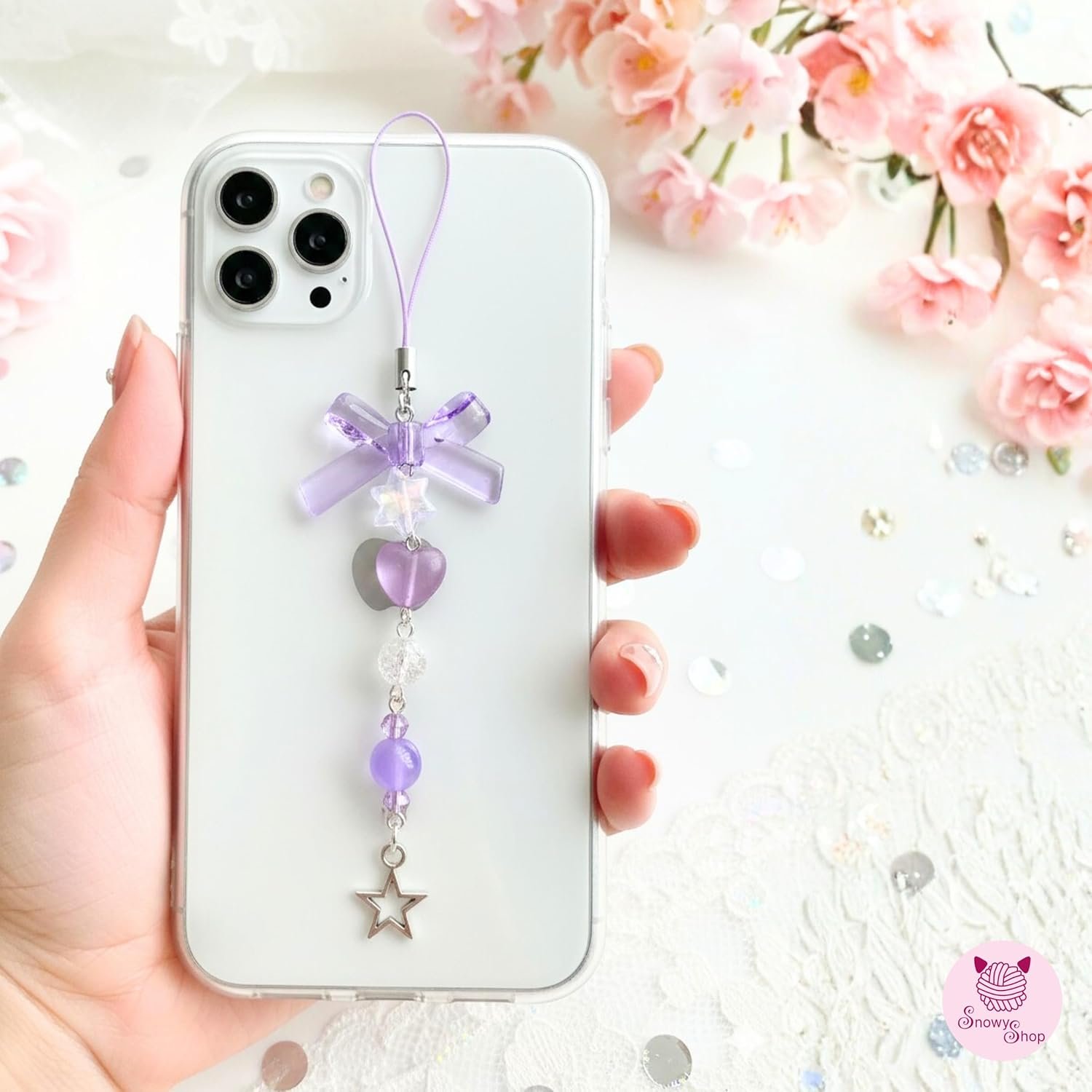 Add a touch of Korean elegance to your everyday style with the SNOWY SHOP Korean Silver Bow Phone Charm. Designed with a delicate silver-tone bow, heart, and starfish charms, this aesthetic accessory instantly upgrades your mobile phone, handbag, or keys. Inspired by Korean fashion trends, this charm blends cute aesthetics with premium craftsmanship. Lightweight yet durable, it’s perfect for daily use without adding bulk. Whether you’re styling your phone, decorating your bag, or gifting someone special, this charm adds effortless charm and personality. Perfect for girls and women who love minimalist, cute, and trendy accessories.