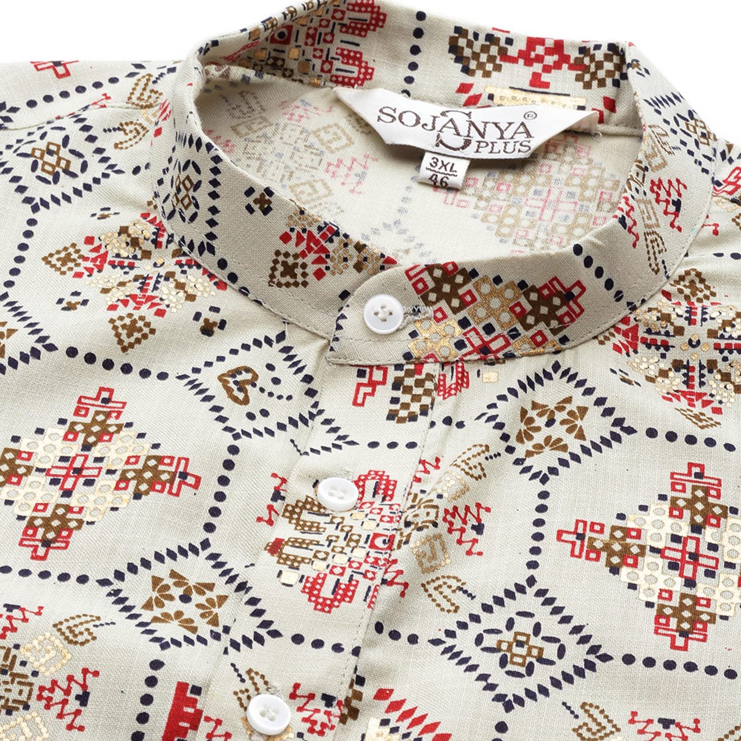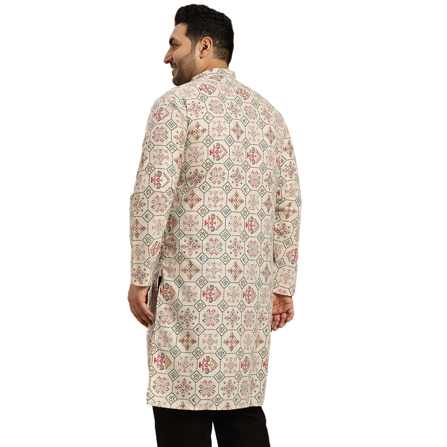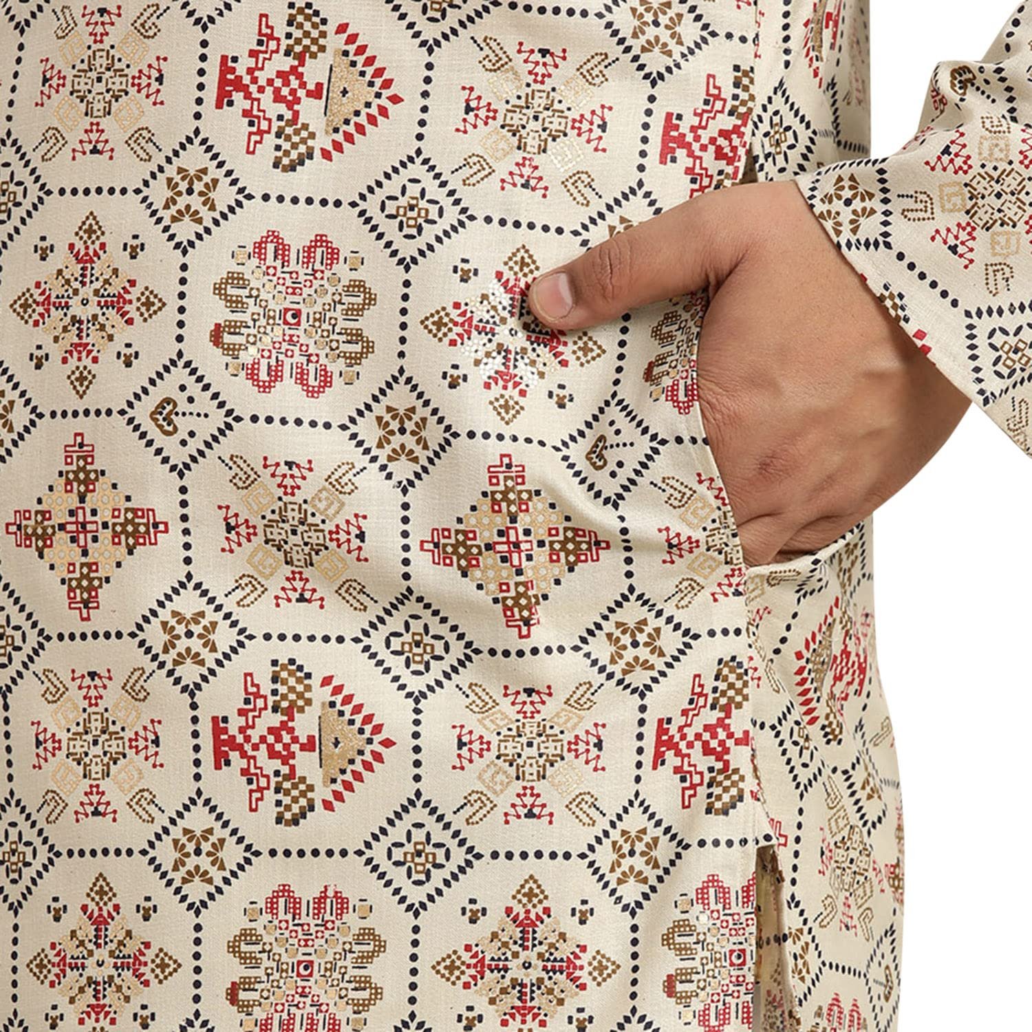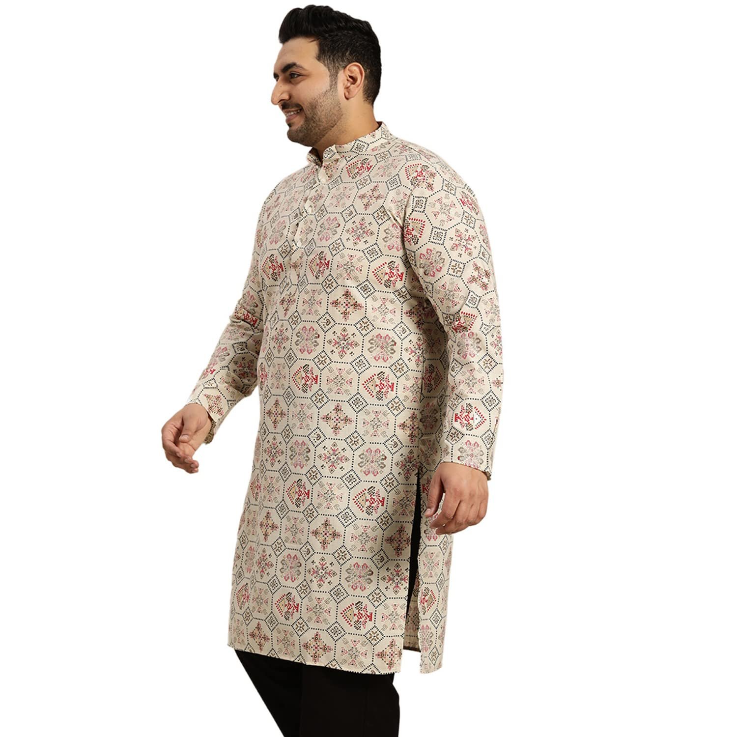 SOJANYA Plus (Since 1958) Men’s Cotton Linen Long Kurta | Ethnic Motif Printed for Navratri, Garba & Puja