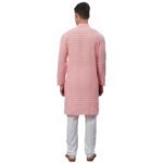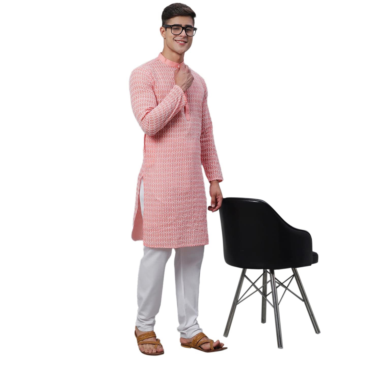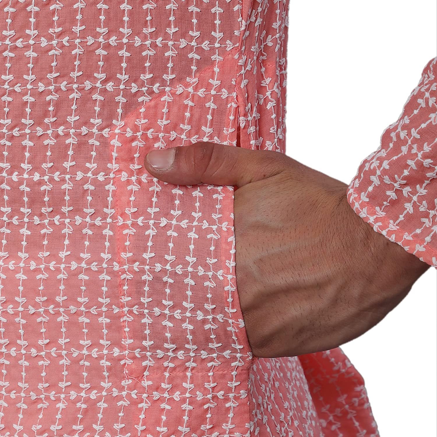 This Kurta looks nice! I love the construction of it, the color is very light and the pattern is nice. It is a bit of a stiffer material, so be aware of that. I don’t know if washing it will make it softer or not. Be sure to measure yourself properly. I am usually a large in clothing but since this fits a bit snug and because of my big stomach, I hate how it looks on ME. You may want to go a size up if you want to feel a bit more comfortable. It may become baggy though so keep that in mind.