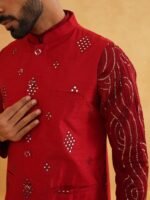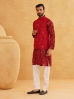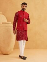 SOJANYA (Since 1958 Men’s Pure Cotton Maroon Kurta and White Pyjama With Maroon Silk Nehru Jacket