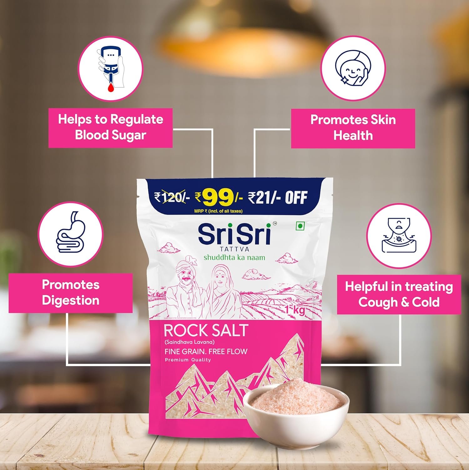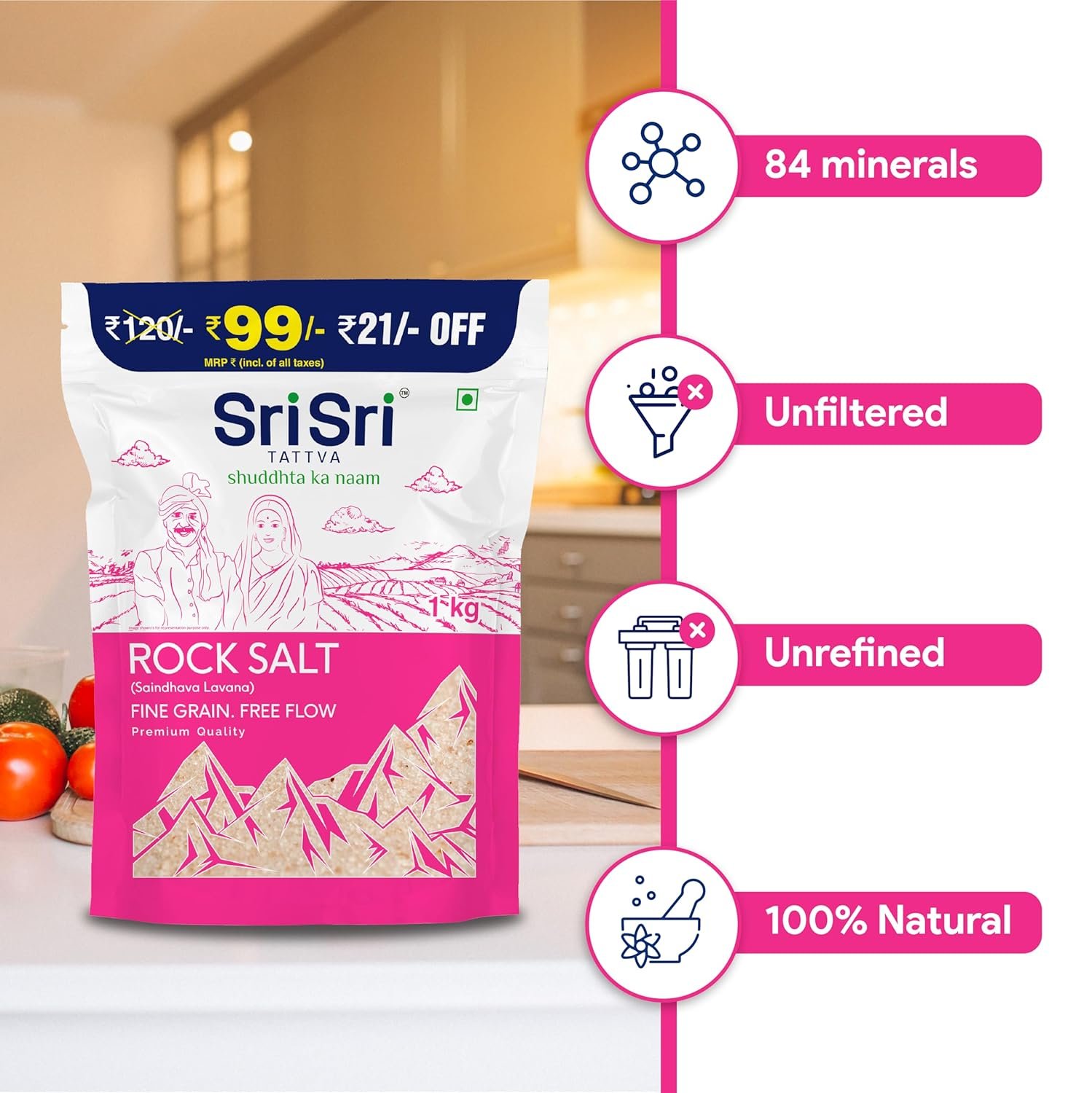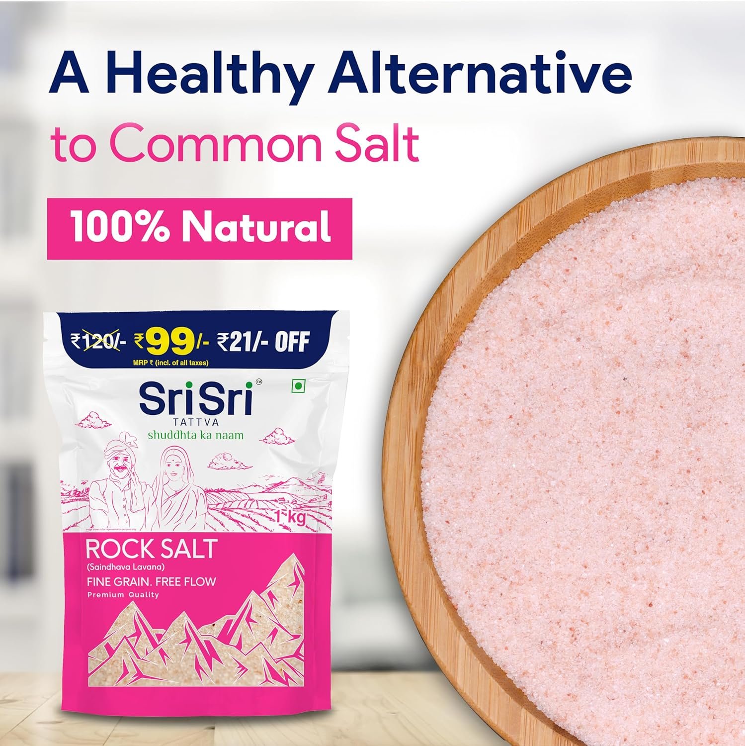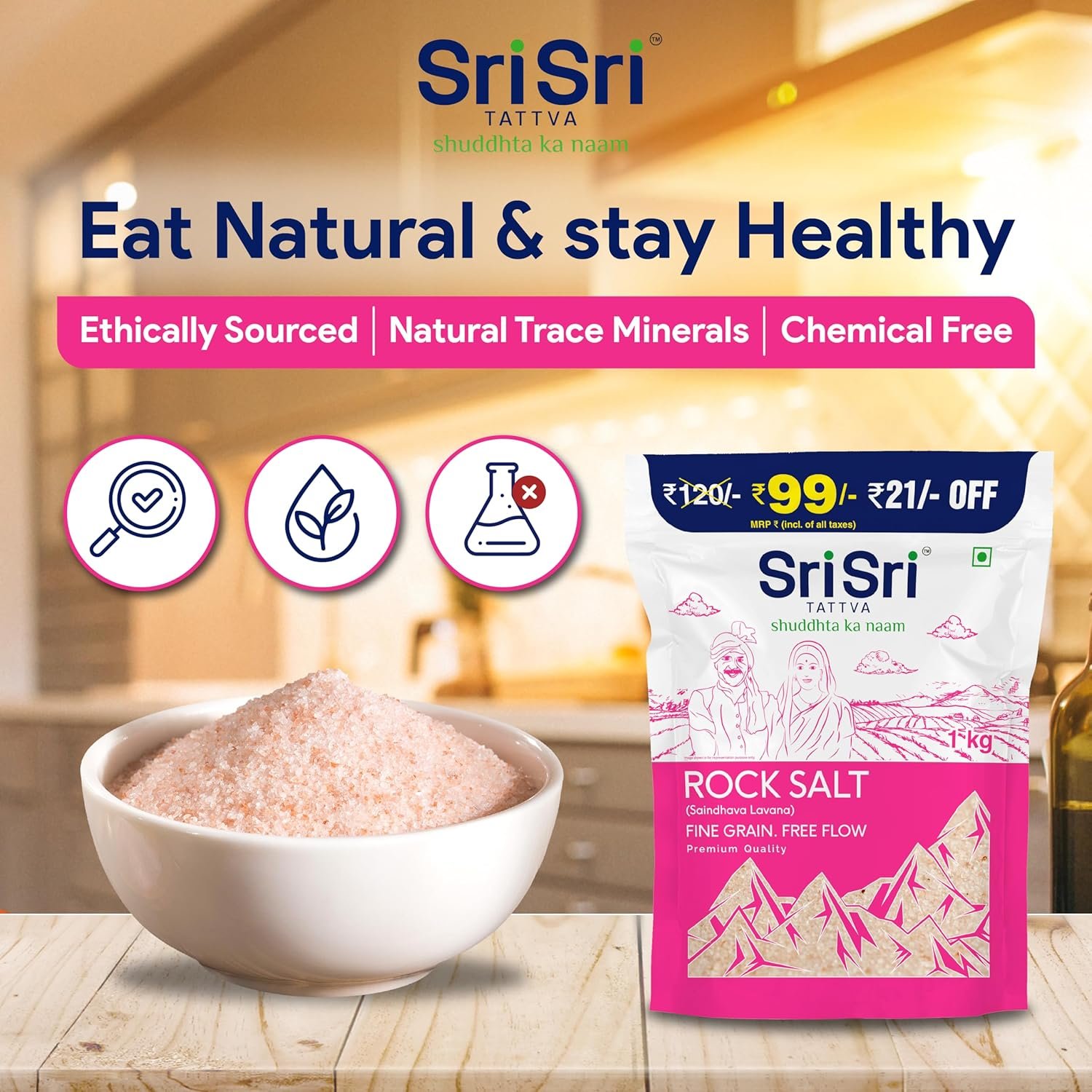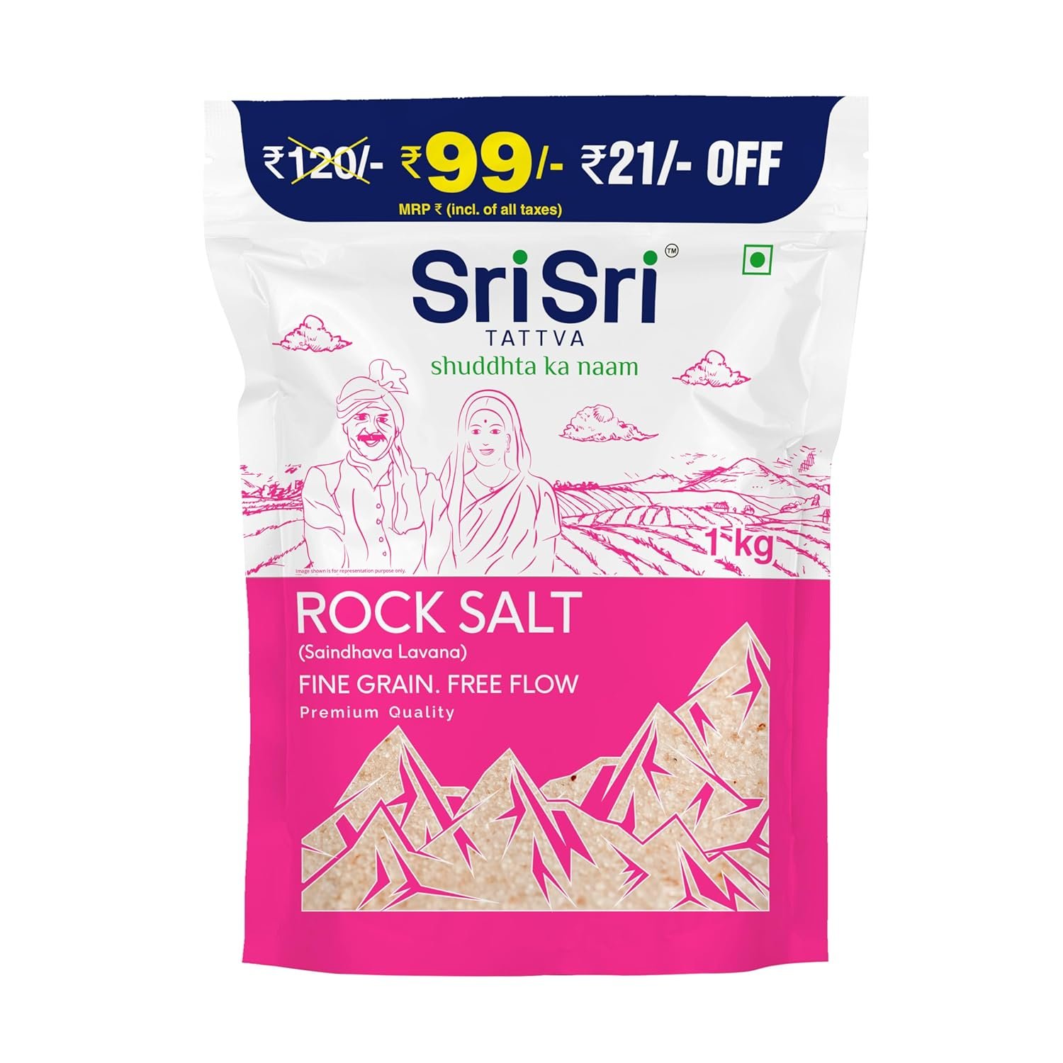 Sri Sri TATTVA shuddhta ka naam Rock Salt (Saindhava Lavana) – Fine Grain, Free Flow – 1kg