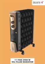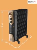 Sujata 11 Fin Oil Heaters For Home | 2 Years Warranty, 2900W | Oil Heater, Oil Heater For Room In Winter, 2 Meter Long Wire, 3 Heat Setting, PTC Fan Heater, ISI Approved, Tilt Switch Safety-Black Gold