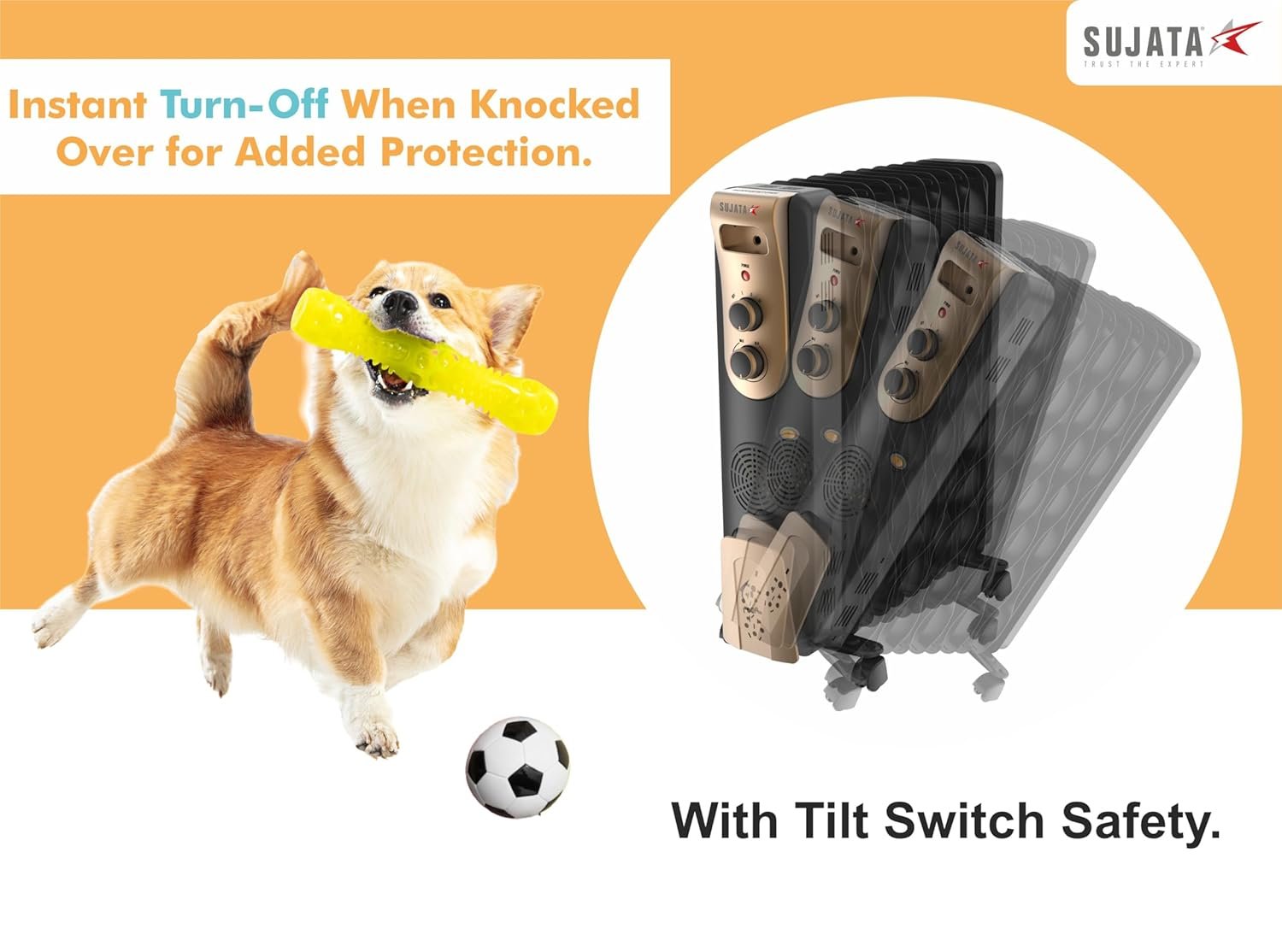 Sujata OFR is ISI certified, featuring tilt switch safety and overheat protection for reliable heating.