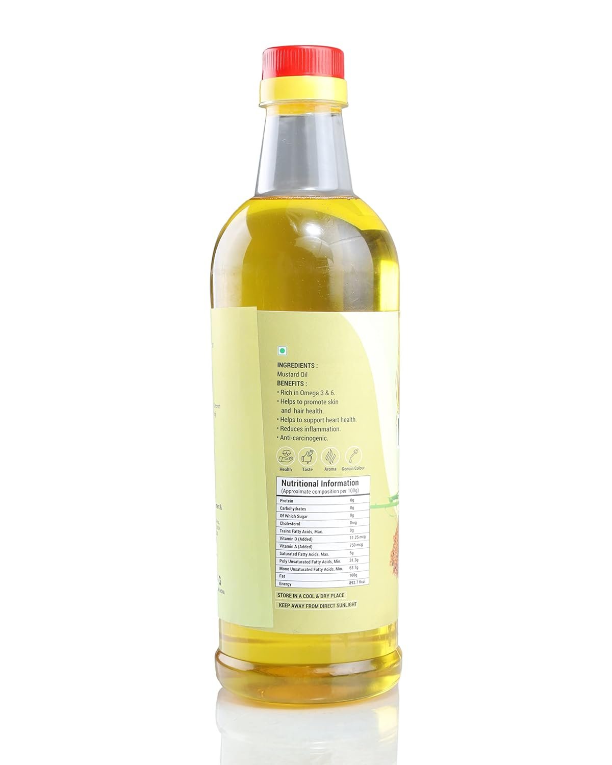 Our mustard oil for cooking is rich in monounsaturated and polyunsaturated fatty acids, which are known to lower bad cholesterol (LDL) levels in the blood.