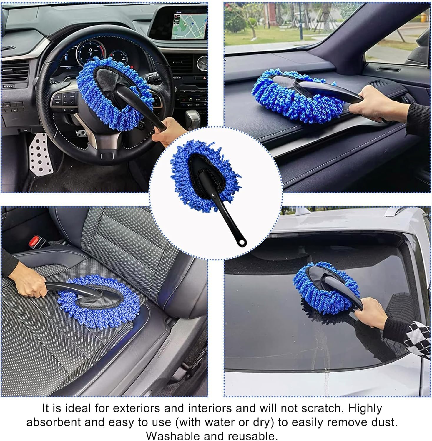 SUPERSTUD 6 Pcs – Car Duster Microfiber Brush Long-1 with | 3in1 Car Vacuum 1Pcs | 1Pcs Car Dustbin | 1Pcs Microfiber Cloth | 1Pcs Interior Cleaning Brush | 1Pcs AC Vent Brush – Royal Blue Color (1)