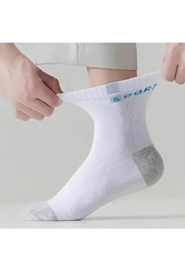 Elevate your athletic performance with these premium cotton sports socks designed specifically for men. Each pack includes 3 pairs of versatile ankle-length socks that combine style with functionality. The socks feature a thoughtfully designed two-tone colour scheme with reinforced heel and toe areas in contrasting grey, ensuring enhanced durability in high-wear zones. Available in classic colours including white, black, and navy, these socks sport a comfortable elastic band that provides a secure fit without being too tight. The breathable cotton material keeps your feet comfortable during various activities, from casual wear to sports. The ‘Sport’ branding adds a touch of athletic style, while the quality construction ensures these socks maintain their shape and comfort through regular use and washing. Perfect for gym sessions, running, or everyday wear, these socks offer the ideal blend of comfort, style, and practicality.