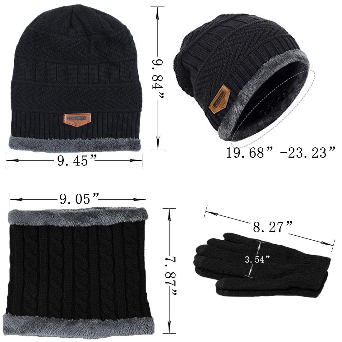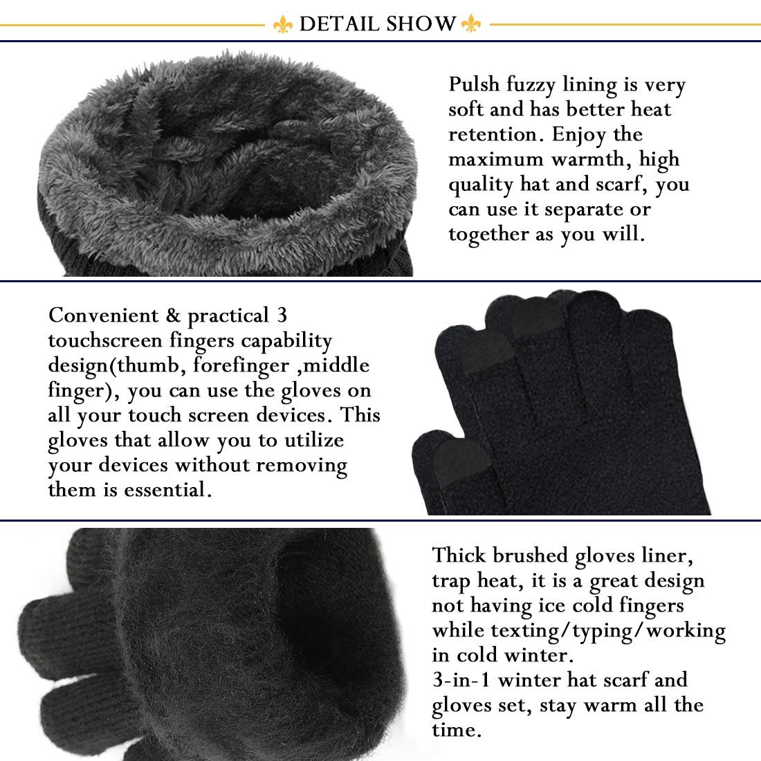 T WILKER Beanie Hat Scarf and Touchscreen Gloves Set for Men & Women Stretch Warm Fleece lining Cap(2Pcs / 3Pcs)
