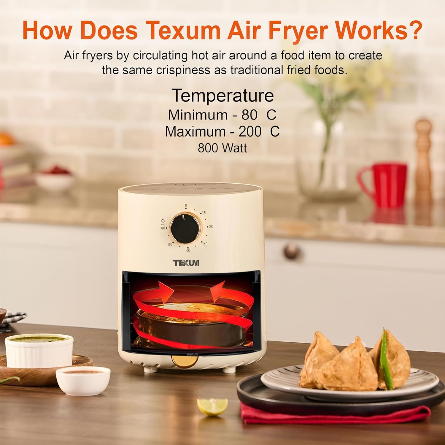 Texum TAF-HK10 Air Fryer 800W, 2.5L, Air Fryer for Home, Electric Air-Fryer with 360° Hot Air Circulation Technology & Timer Control, Oil Free Fryer for Bake & Toast