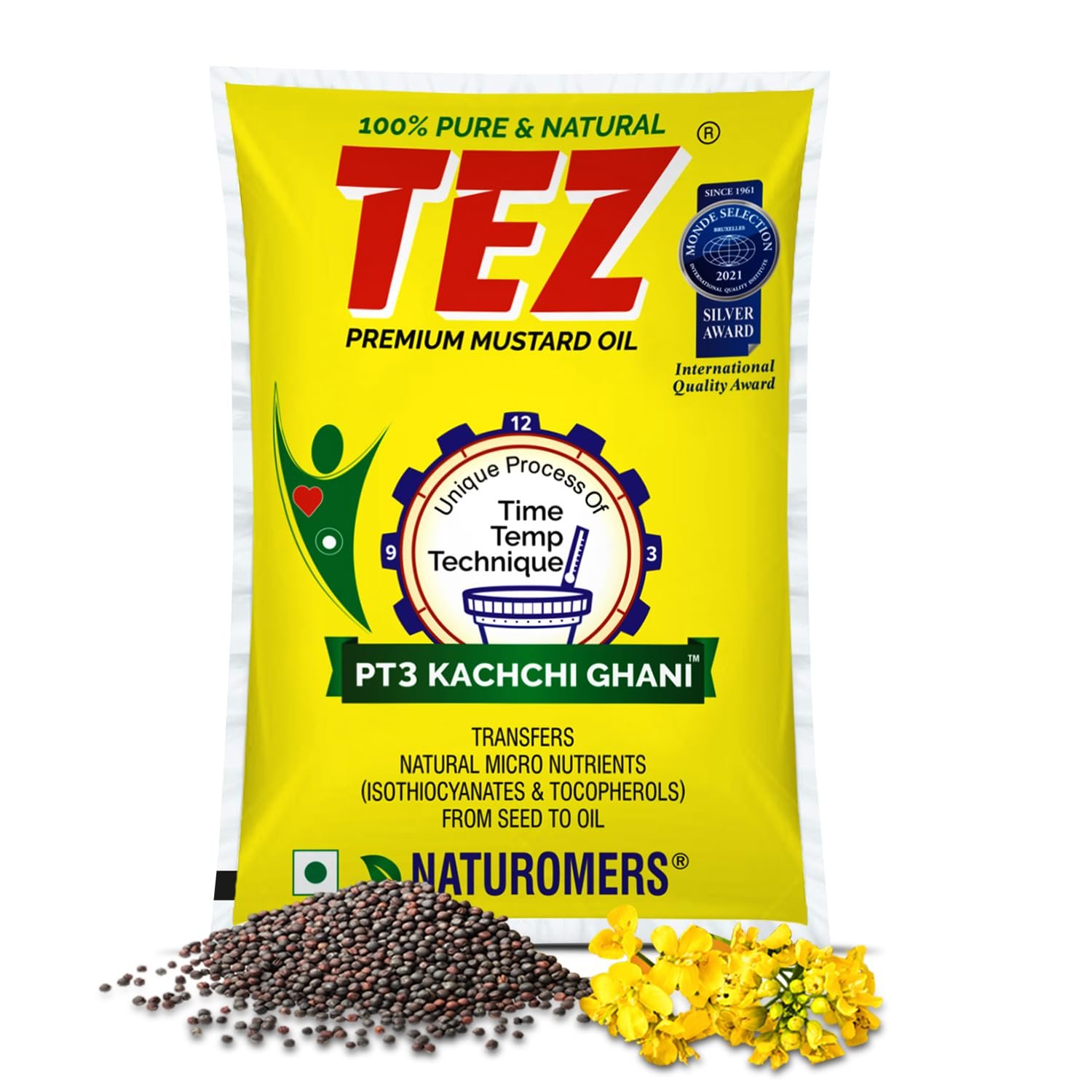 100% Pure & Natural: Tez Mustard Oil is crafted from premium seeds using the unique proprietary PT3 Kachi Ghani process, ensuring a natural, pungent flavour with an extra zing for cooking.