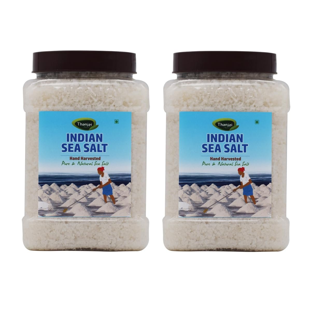 Thanjai Natural Indian Sea Salt 2KG [No Artificial Iodine] Hand Harvested Traditionally Made 100% Natural (1kg x 2) (Crystal in JAR