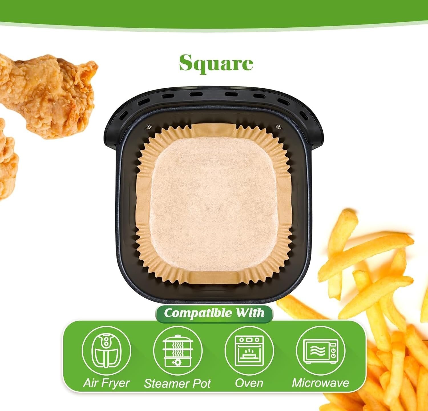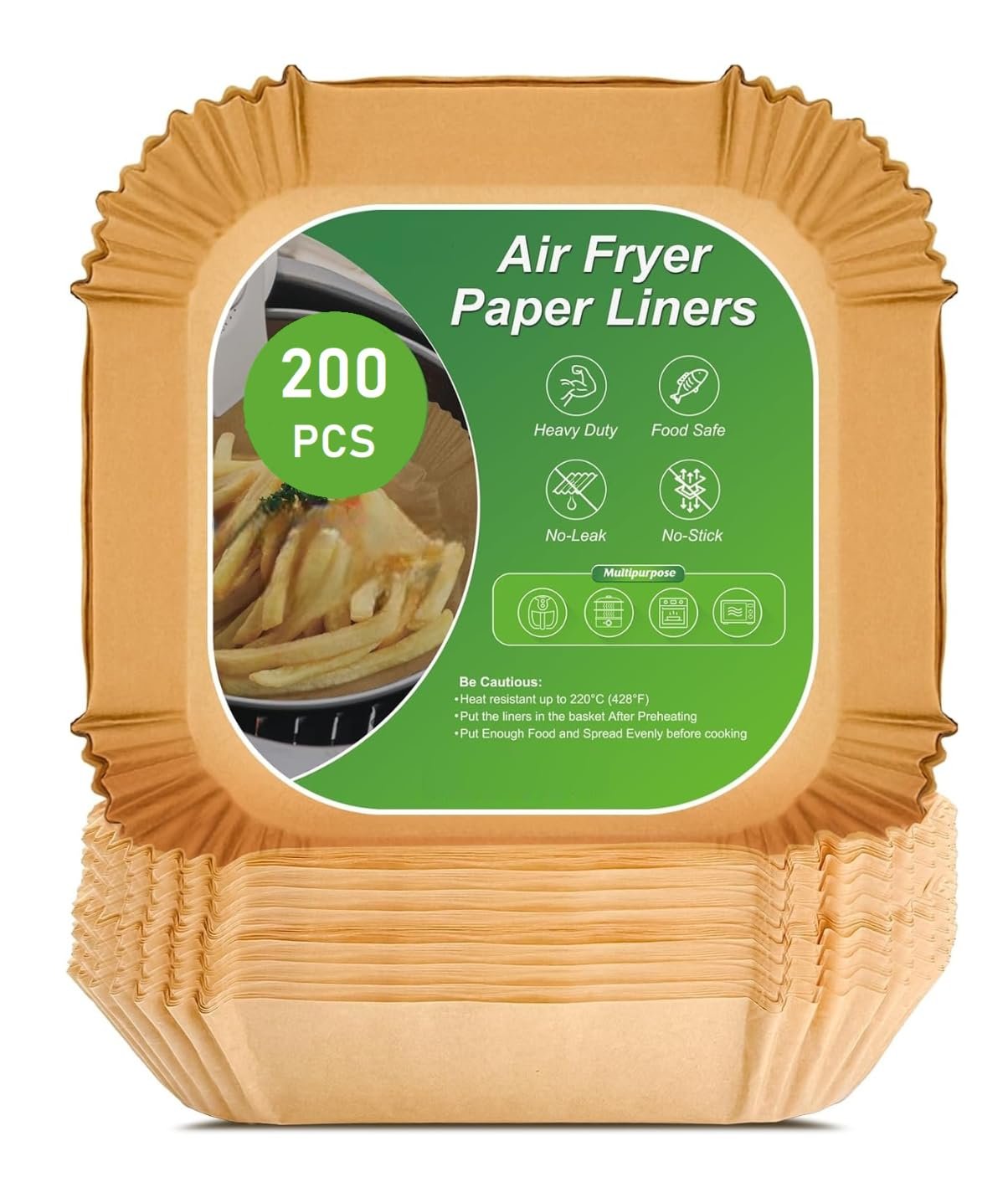UCRAVO 200 pcs Square Air Fryer Paper Sheets, Non-Stick Parchment Disposable Paper Liner for Microwave, Oil-Proof Air Fryer Parchment Paper for Frying, Baking, Cooking, Roasting and Microwave