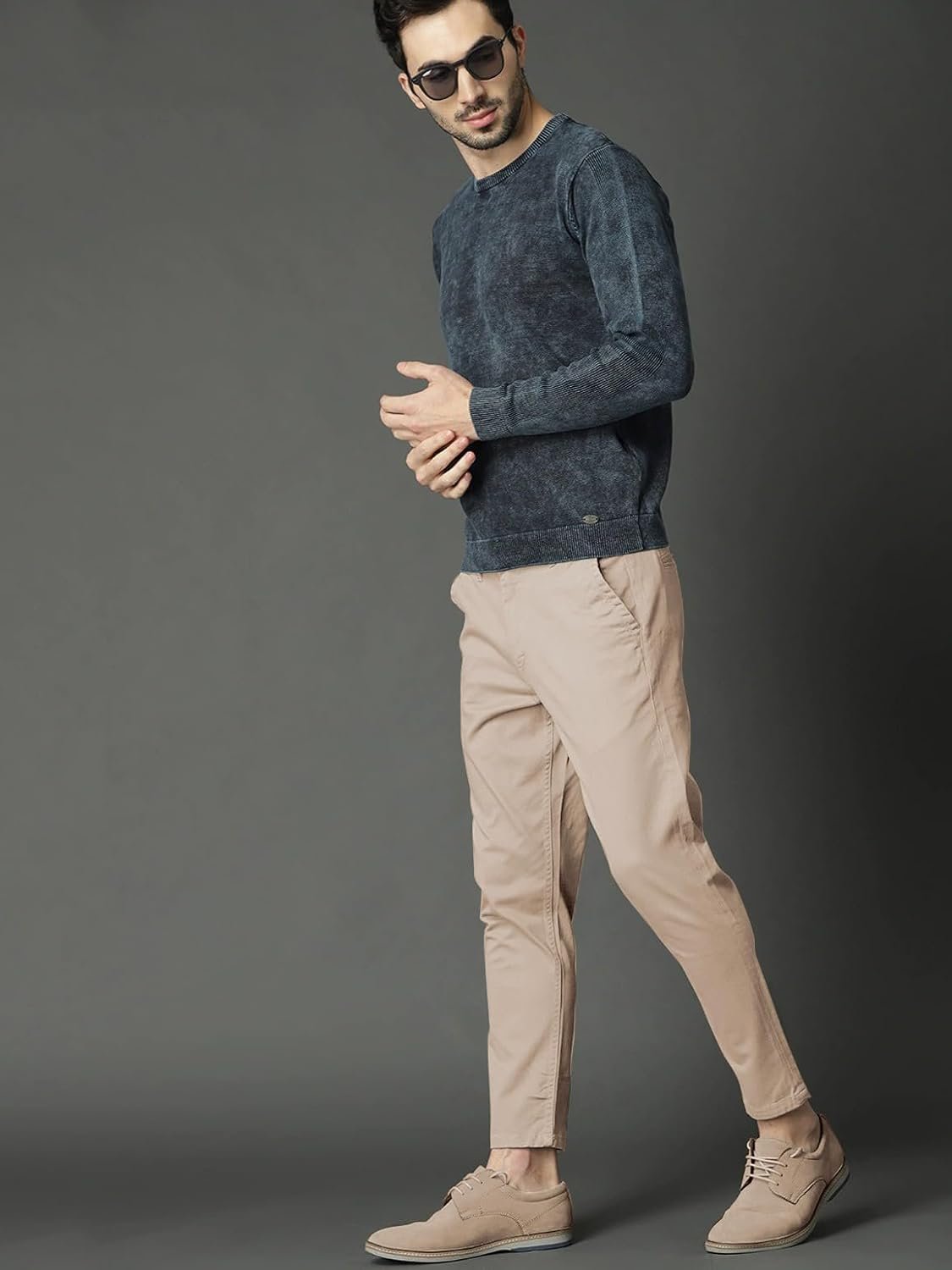 The **mid-rise waist with a fly and button closure** offers a **secure and adjustable fit**, while the **full-length design** adds a touch of class to your wardrobe. Pair these trousers with **formal shirts for a sharp office look** or style them with **casual tees for a relaxed weekend vibe**.
