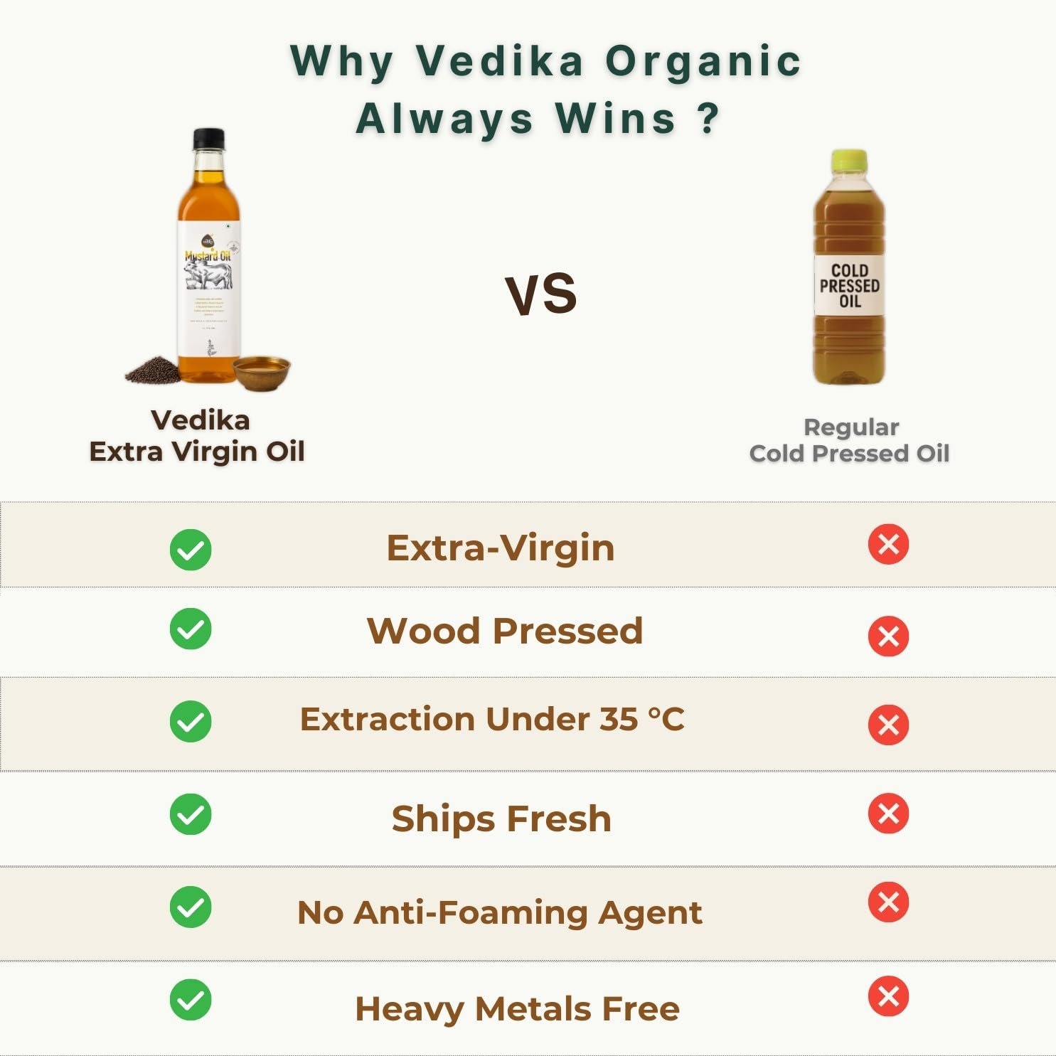 Since Wood-pressed oils are unfiltered and minimally processed, they have a shorter shelf-life and produce a lower yield. For this reason, Wood pressed oil is better than regular oil.