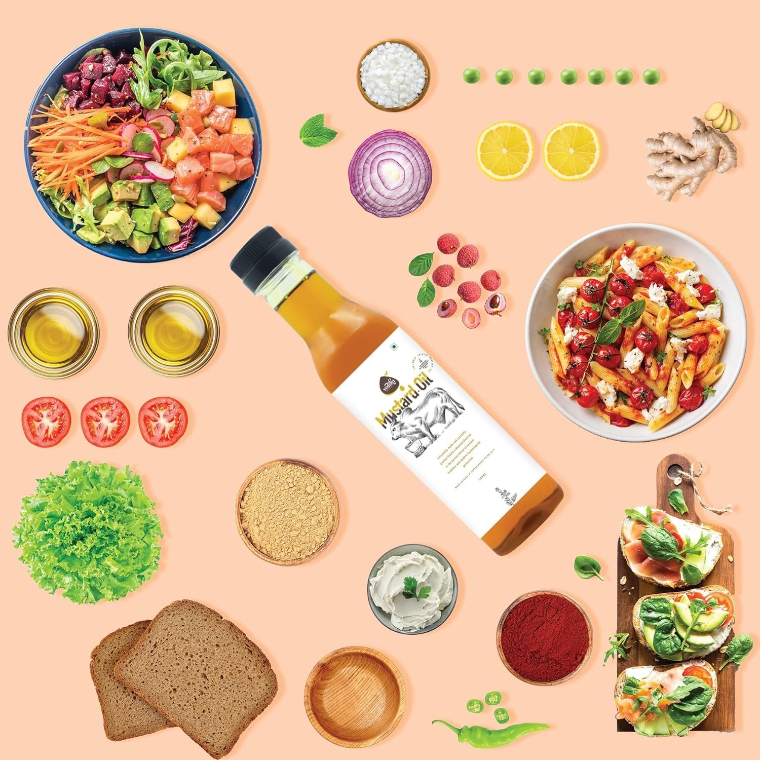 Sun- dried mustard seeds are then single pressed in wooden kolhu so that the oil retains all the nutrients.