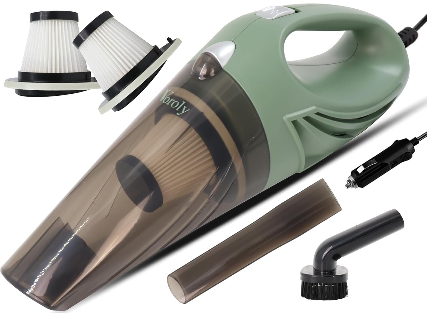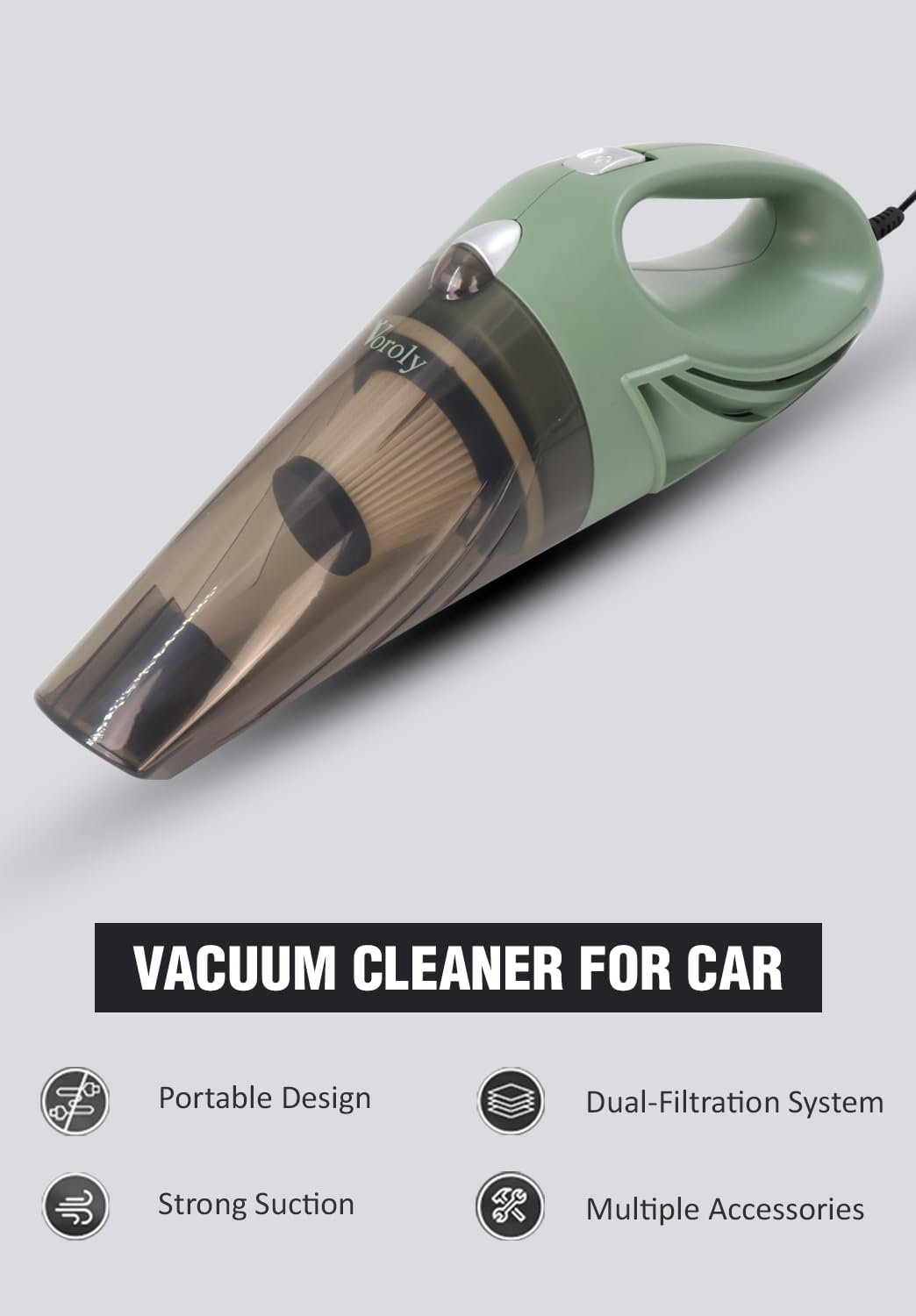 Voroly 5000PA Power Suction Handheld Car Vacuum Cleaner for Car Dry and Wet DC12V (Light Green)