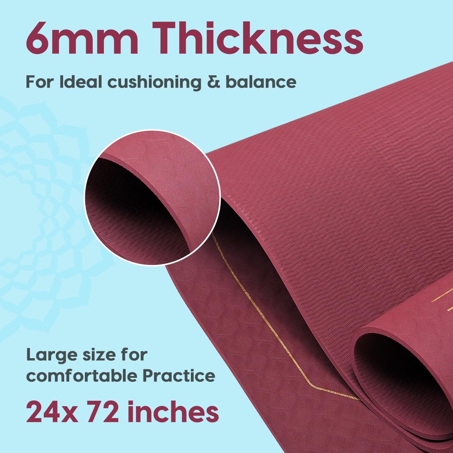 IDEAL THICKNESS & CUSHIONING: 6mm thickness is to provide optimal cushioning and support for joints while maintaining a firm surface for balance poses.