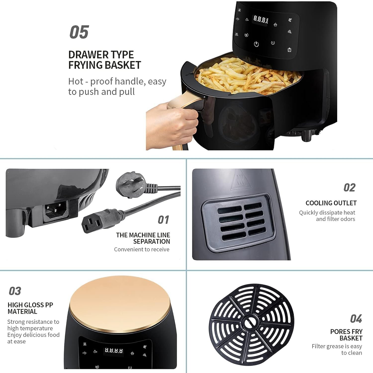 - 🧽 Easy to Clean: Non-stick basket is detachable and dishwasher safe – hassle-free maintenance.