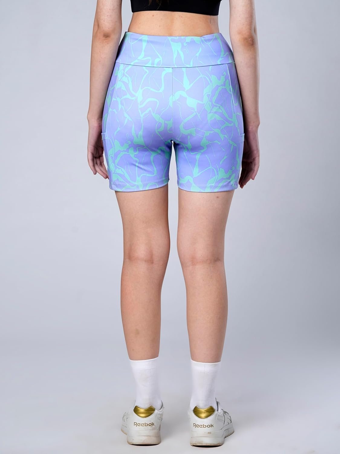 Women’s Activewear Solid Printed Cycling Shorts with Pockets – High Waist Gym Yoga Running (S to XL)
