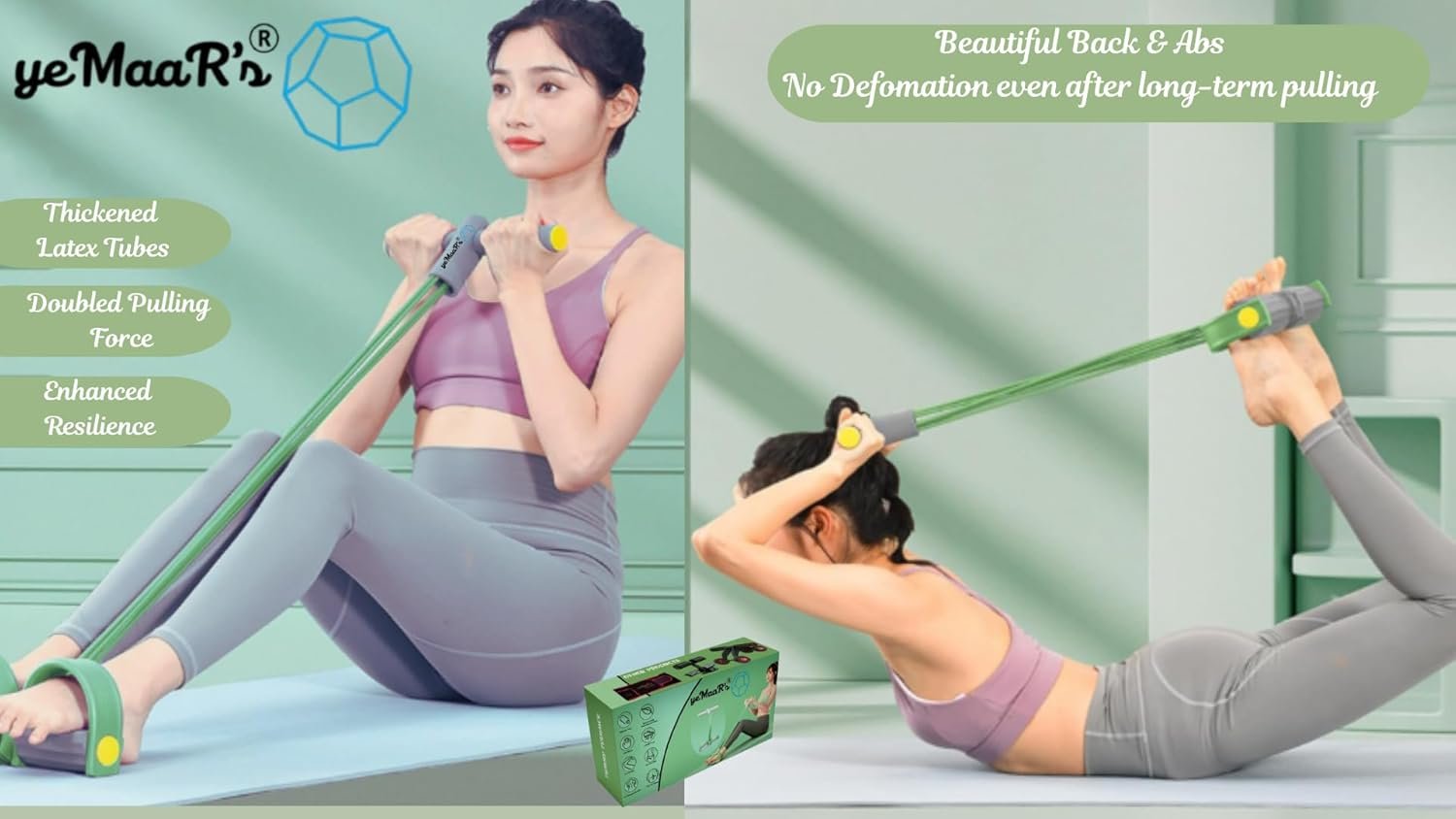 yeMaaR’s Tension Rope 6 Tube Elastic Yoga Pedal Puller Fitness Equipment Abdomen Waist Stretching Slimming Tummy Trimmer Home Gym, Ab Exercise Belly Fat Exercise Equipment
