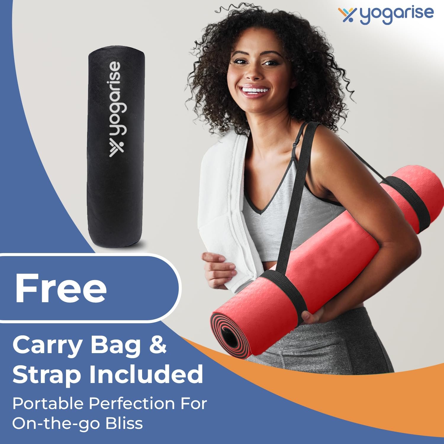Lightweight and Portable: The Yogarise Yoga Mat is designed with convenience in mind. It’s lightweight and comes with a carry strap & bag, making it easy to transport to your yoga studio, gym, or outdoor workout spot.