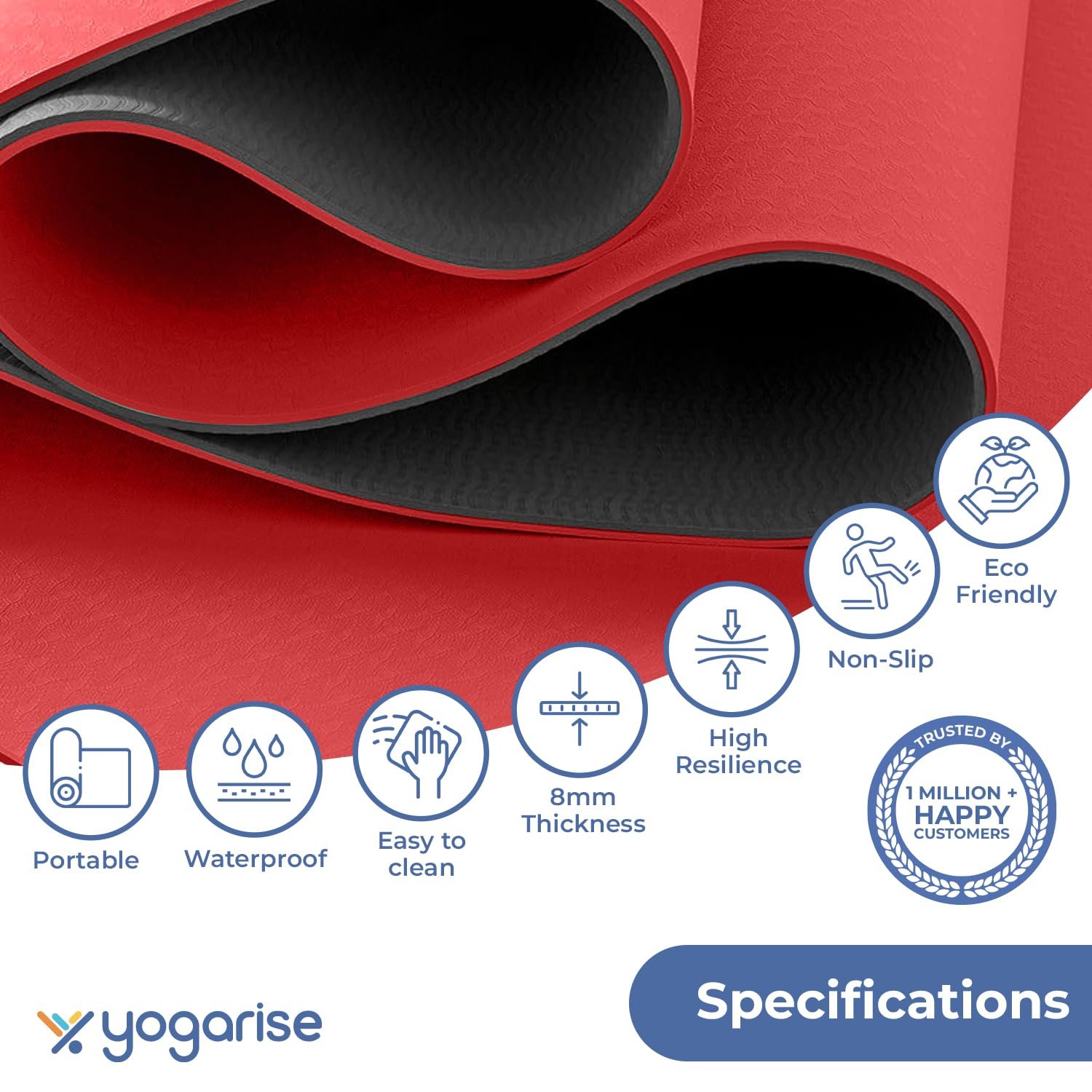 Yogarise 8mm Yoga Mat, Yoga Mat for Women and Men, Premium TPE Material Extra Thick Exercise Yoga Mat for Workout, Yoga, Fitness, Exercise Mat Anti Slip Mat, Yoga Mat Gym Mat (Red & Black)
