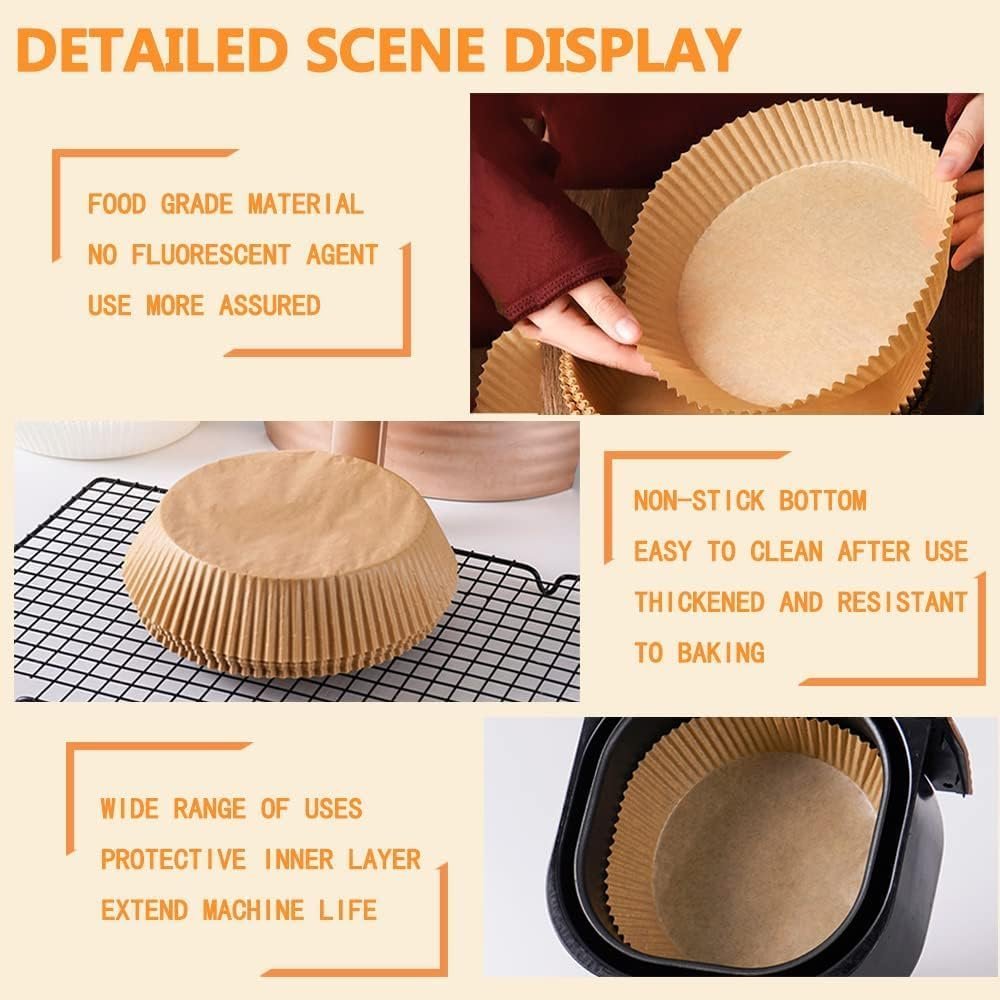 [Keep Your Air Fryer Clean]–These disposable paper liners can effectively keep food residue away from the fryer and make it as clean as unused, saving time and effort. These paper liners are a must-have if you hate cleaning after baking.