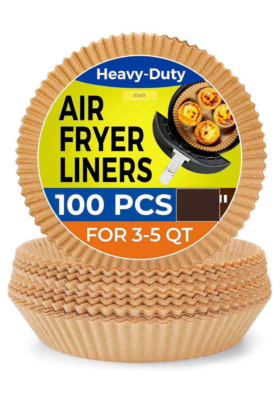 ZELKEY 100 PCS Air Fryer Round Parchment Paper Liners – Non-Stick, Heat Resistant, Baking Paper – Fits 5 to 8 QT Air Fryers – Disposable, Food-Grade, Grease-Proof Sheets. (Round, 8 INCH)